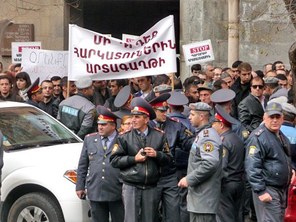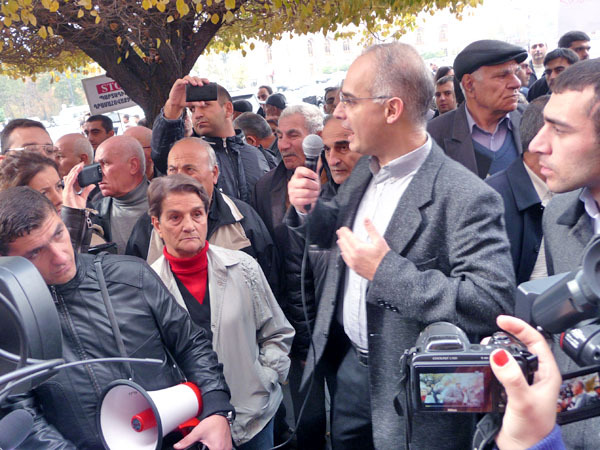 Участники акции протеста потребовали от властей Армении доработать реформу пенсионной системы, которую планируется ввести с января 2014 года. Ереван, 15 ноября 2013 г. Фоторепортаж корреспондента «Кавказского узла» Армине Мартиросян