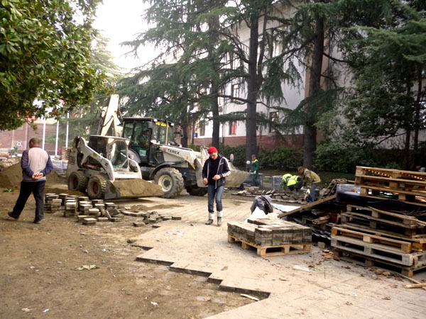 Строительные работы на улице Навагинская напротив администрации Центрального района в День города. Сочи, 21 ноября 2013 г. Фоторепортаж корреспондента "Кавказского узла" Светланы Кравченко