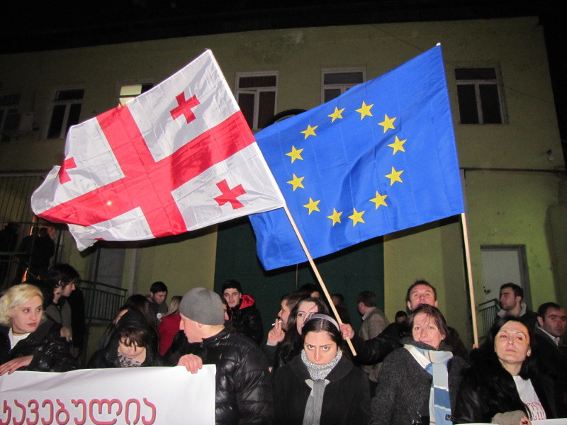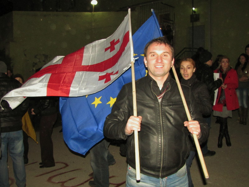 Митинг в поддержку Вано Мерабишвили перед тюрьмой в Исани 30 ноября 2013 года. Фоторепортаж Марины Букия для "Кавказского узла"