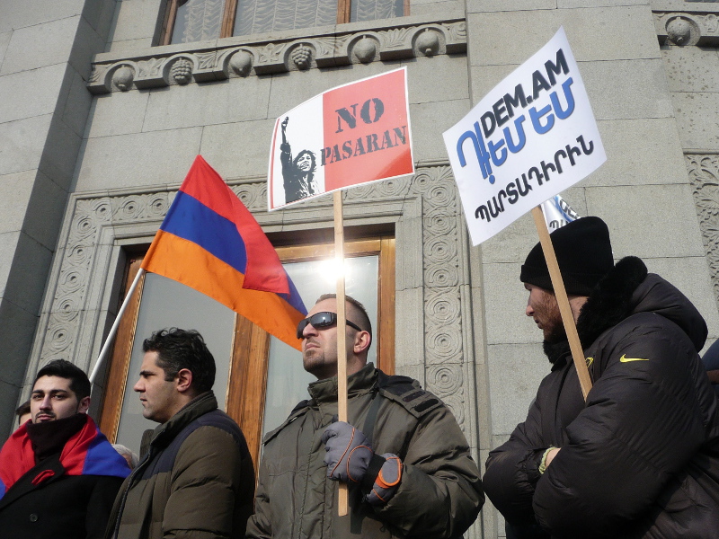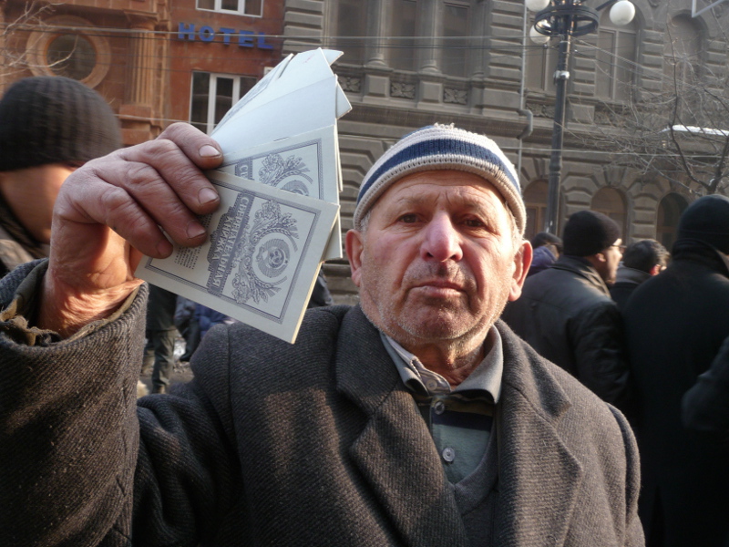 Акция с требованием отменить новую накопительную пенсионную систему прошла в Ереване 18 января 2014 года. Фоторепортаж корреспондента "Кавказского узла" Армине Мартиросян.