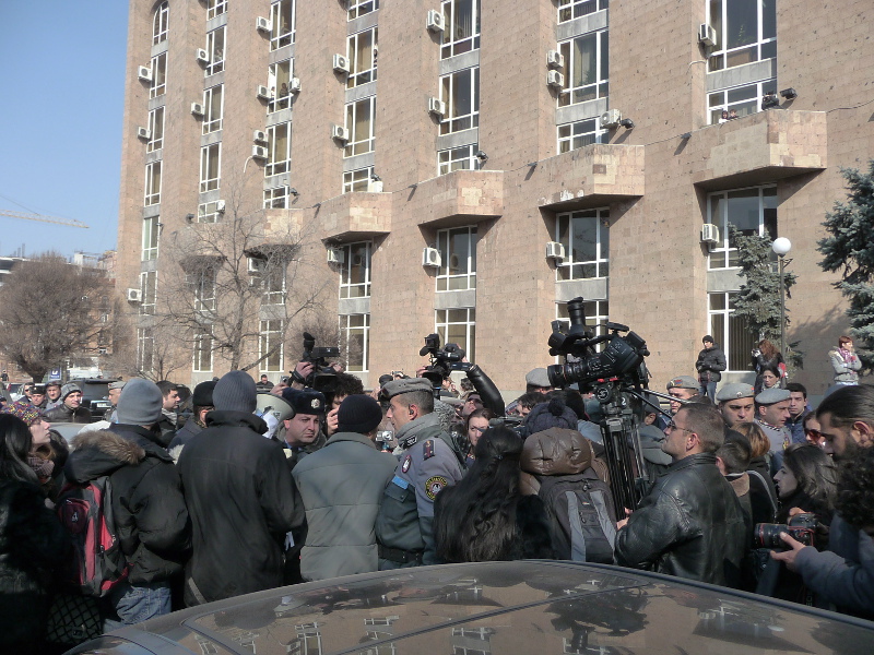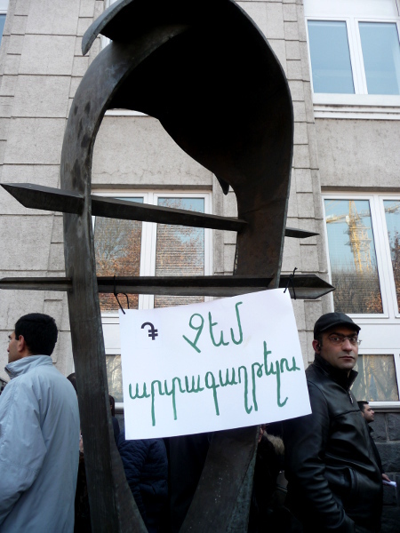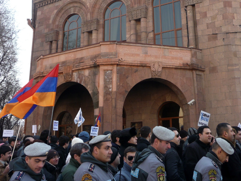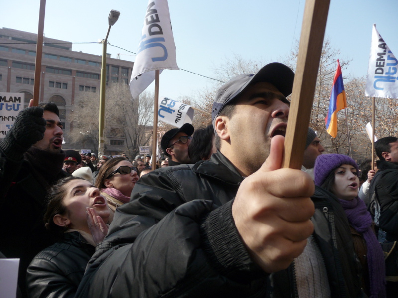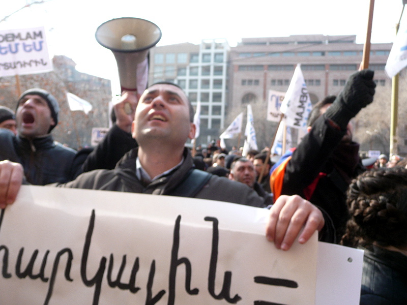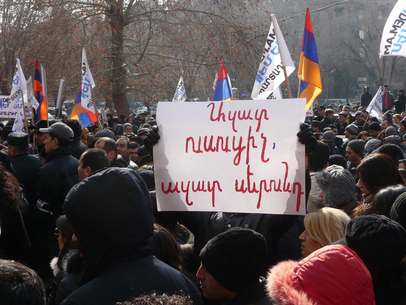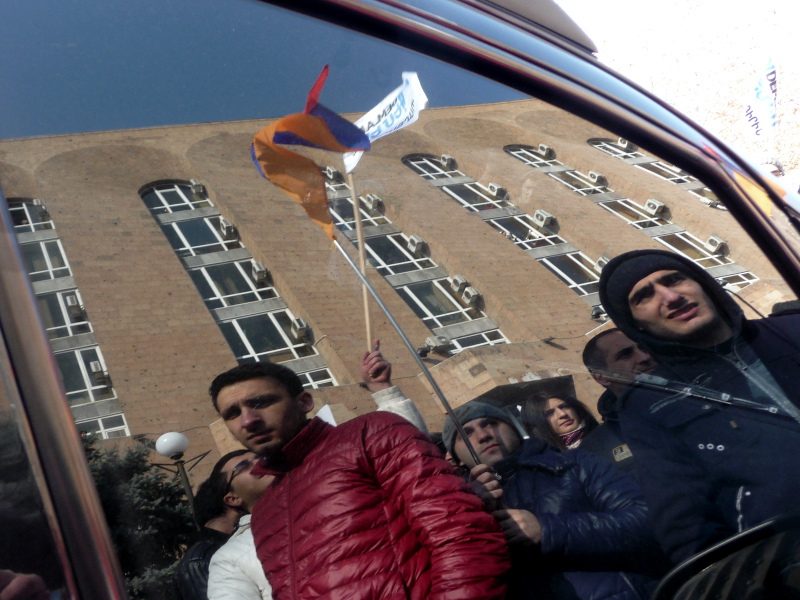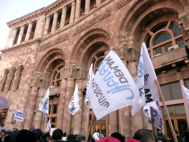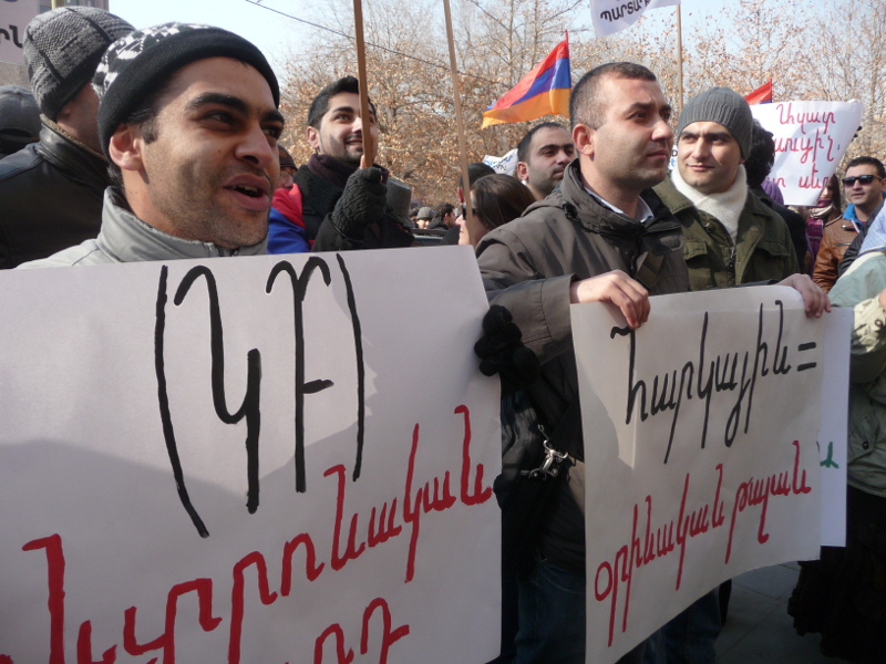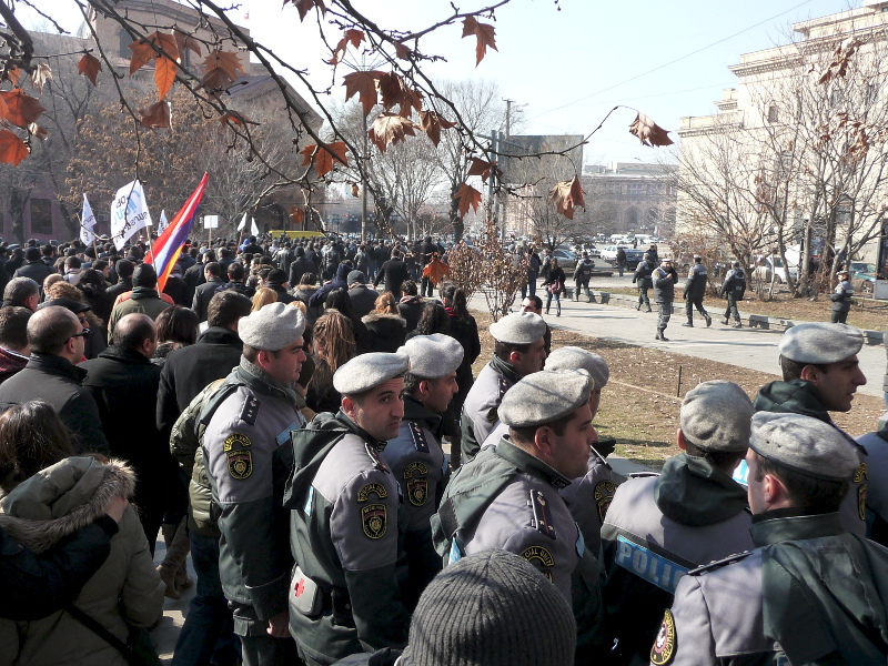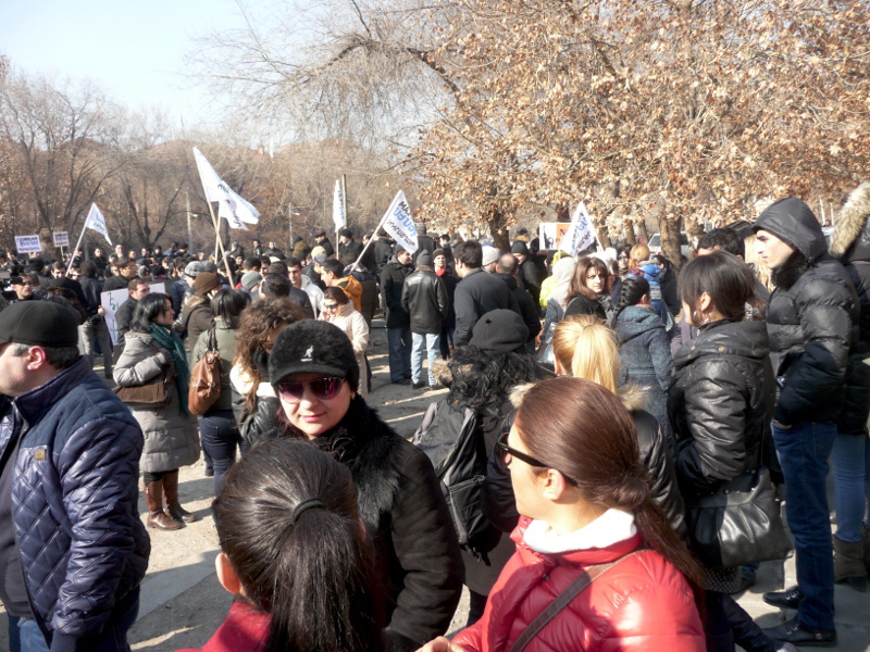Шествие под лозунгом "Завоевание права" против пятипроцентных пенсионных отчислений прошло в Ереване 6 февраля 2014 года. Фоторепортаж корреспондента "Кавказского узла" Армине Мартиросян.