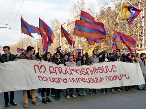 Митинг оппозиции, приуроченный к столкновениям демонстрантов с полицией 1 марта 2008 года. Ереван, 1 марта 2014 г. Фоторепортаж корреспондента "Кавказского узла" Армине Мартиросян