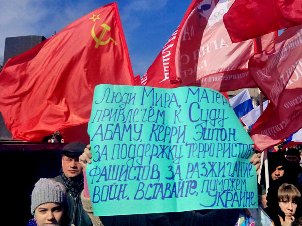 Митинг в поддержку жителей Украины. Астрахань, 9 марта 2014 г. Фоторепортаж корреспондента "Кавказского узла" Елены Гребенюк