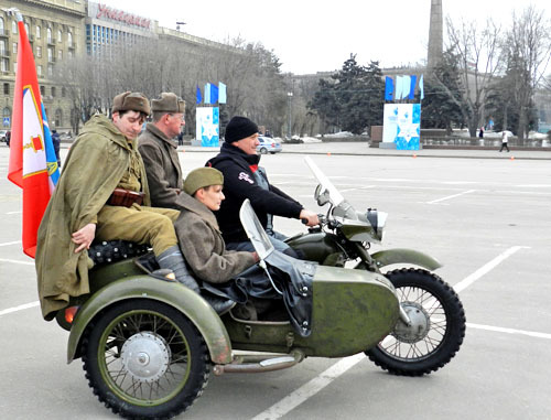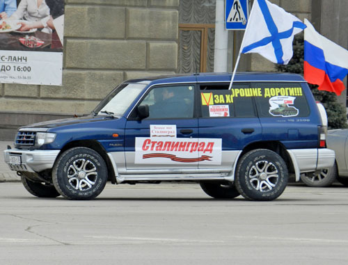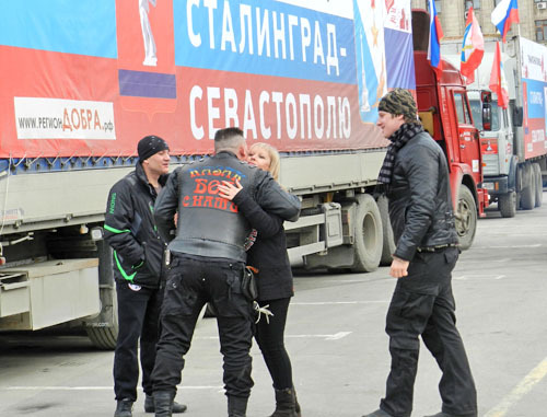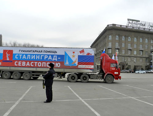 Митинг перед отправкой фур с гуманитарной помощью в Севастополь. Волгоград, 9 марта 2014 г. Фоторепортаж корреспондента «Кавказского узла» Татьяны Филимоновой