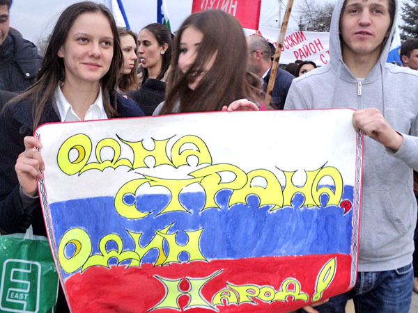 Митинг в поддержку присоединения Крыма. Нальчик, 18 марта 2014 г. Фоторепортаж корреспондента "Кавказского узла" Людмилы Маратовой