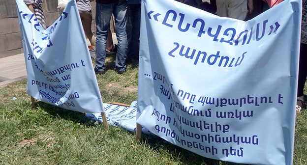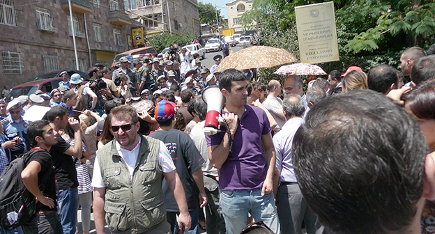 Акция протеста против повышения тарифов на электроэнергию в Ереване1 июля 2014 года