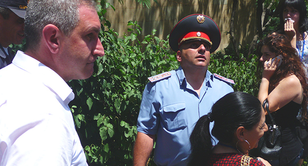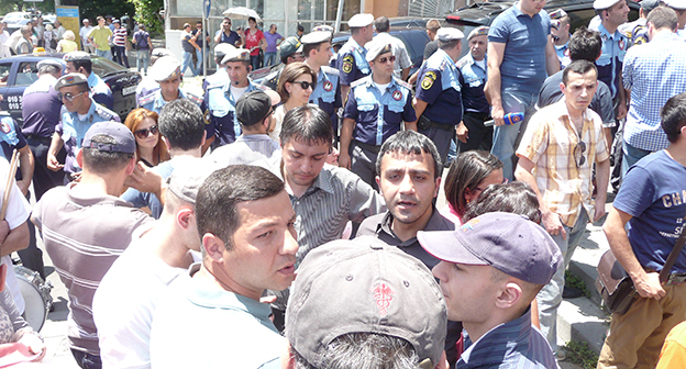 Акция протеста проходила 1 июля перед зданием госкомиссии по регулированию общественных услуг, где обсуждался вопрос повышения тарифов на электроэнергию. Активисты требовали у участников заседания “не принимать античеловеческое решение по подорожанию электроэнергии” и дать им возможность участвовать в обсуждениях вопроса.Они борются против принятого госкомиссией решения о повышении с 1 августа тарифов на электроэнергию.