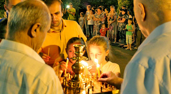 Акция "Свеча памяти" и заупокойная молитва, посвященные шестилетней дате войны в Южной Осетии. Владикавказ, 7 августа 2014 г. Фото Эммы Марзоевой для "Кавказского узла"