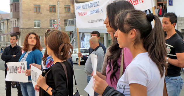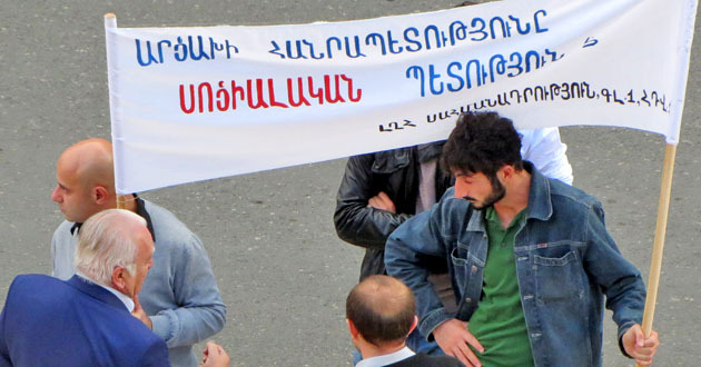 Акция против повышения тарифов на проезд в общественном транспорте Степанакерта. 29 сентября 2014 г. Фоторепортаж корреспондента "Кавказского узла" Алвард Григорян