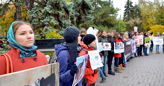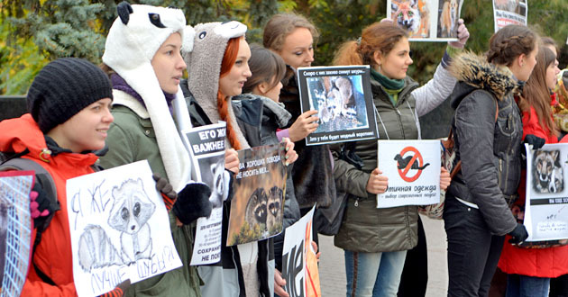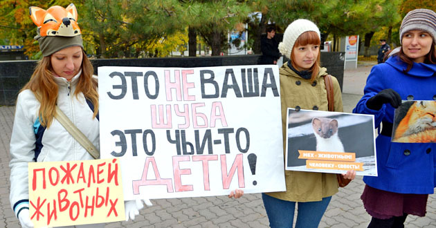 Акция "Животные – не одежда". Ростов-на-Дону, 19 октября 2014 г. Фоторепортаж корреспондента "Кавказского узла" Олега Пчелова