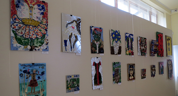 Выставка работ юных художников, подготовленная к празднованиям 90-летия со дня рождения кинорежиссера Сергея Параджанова. Степанакерт. Нагорный Карабах. 26 сентября 2014 год. Фоторепортаж корреспондента "Кавказского узла" Алвард Григорян