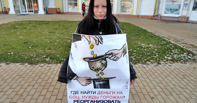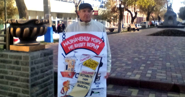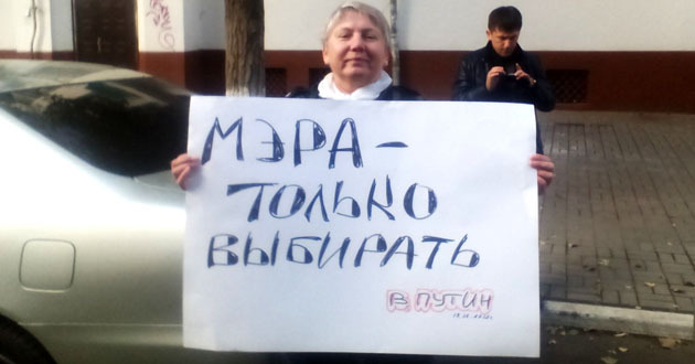 Серия одиночных пикетов сторонников прямых выборов мэра. Астрахань, 11 ноября 2014 г. Фоторепортаж корреспондента «Кавказского узла» Елены Гребенюк
