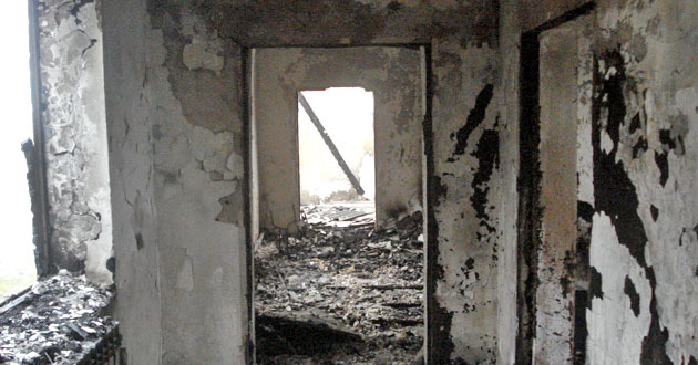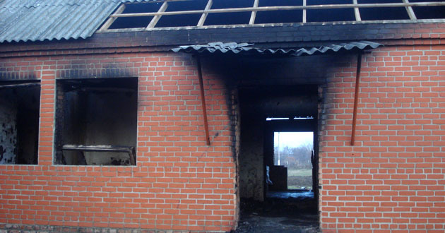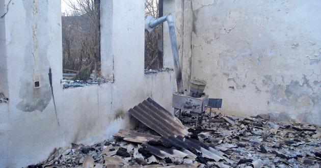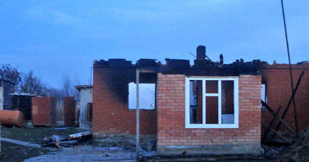 Сожженные дома родственников членов вооруженного подполья. Село Янди Ачхой-Мартановского района. 7 декабря 2014 г. Фоторепортаж пресс-службы ПЦ «Мемориал». См. подробности в статье http://www.kavkaz-uzel.ru/articles/253787/