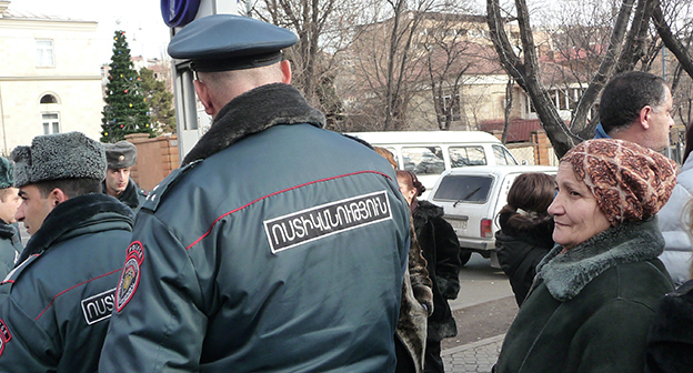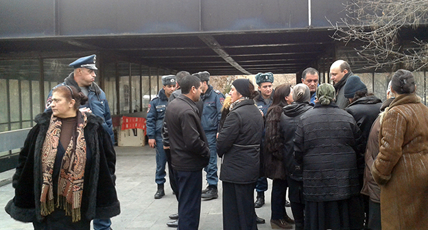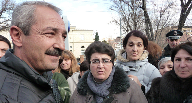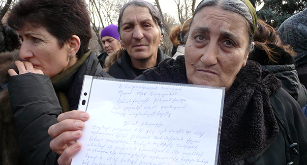 Работники нового оператора по вывозу мусора "Санитек" вышли на акцию протеста к резиденции президента. Фоторепортаж корреспондента "Кавказского узла" Армине МИартиросян
