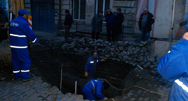 Провал участка проезжей части в Тбилиси. Фоторепортаж корреспондента "Кавказского узла" Беслана Кмузова