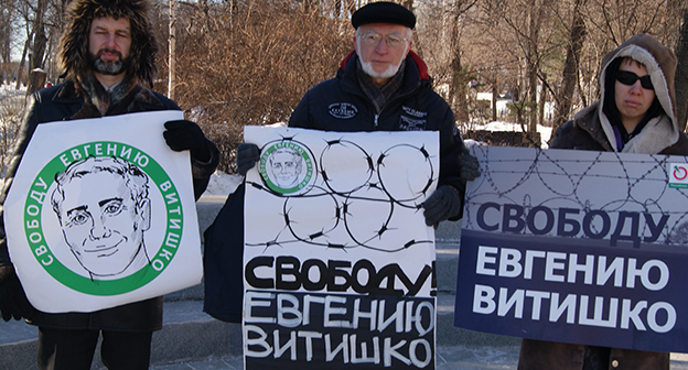 Пикет в поддержку эколога Евгения Витишко в Москве. Фоторепортаж корреспондента "Кавказского узла" Вячеслава Ферапошкина. 18 февраля 2015 г.