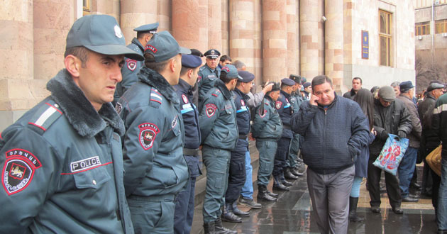 Акция бывших сотрудников завода "Наирит" с требованием погасить долги по зарплате. Ереван, 5 марта 2015 г. Фоторепортаж корреспондента "Кавказского узла" Тиграна Петросяна