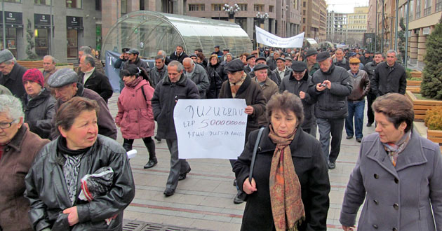 Акция бывших сотрудников "Наирит" с требованием погасить долги по зарплате. Ереван, 5 марта 2015 г. Фото Тиграна Петросяна для "Кавказского узла"