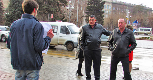Одиночный пикет против войны на Украине провел Юрий Троценко. Волгоград, 7 марта 2015 г. Фоторепортаж корреспондента «Кавказского узла» Вячеслава Ященко