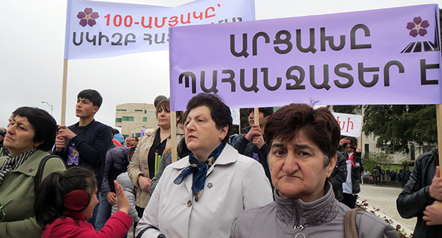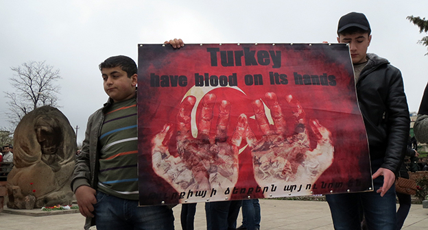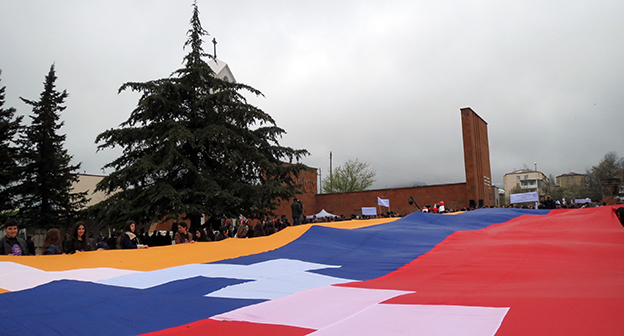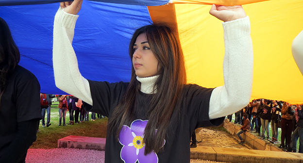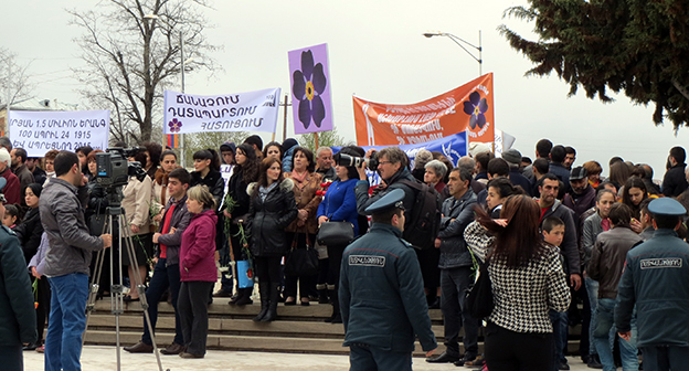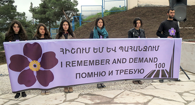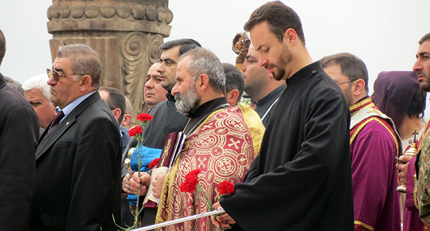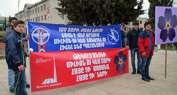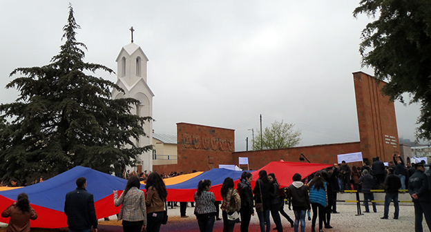 Колокольня построена в столице Нагорного Карабаха в Степанакерте к 100-летию геноцида армян. 25 апреля 2015 год. Фоторепортаж корреспондента "Кавказского узла" Алвард Григорян