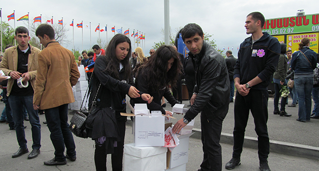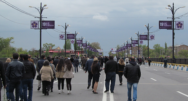 «100-летие памяти жертв Геноцида: мемориальный комплекс Цицернакаберд». Ереван, 24 апреля 2015 год. Фоторепортаж корреспондента "Кавказского узла" Тиграна Петросяна