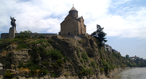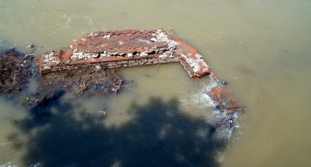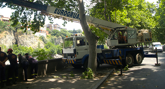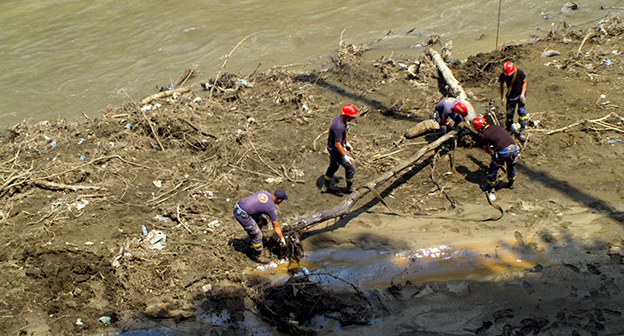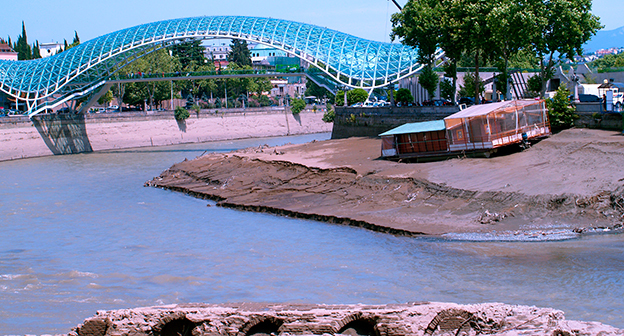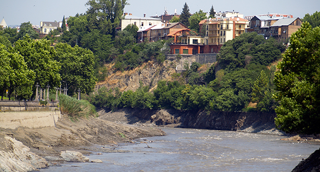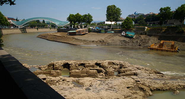 Осушение Куры во время поисковых работ. Тбилиси, 5 июля 2015. Фоторепортаж корреспондента "Кавказского узла" Беслана Кмузова.