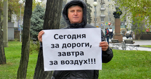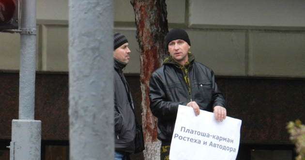 Пикетчики стояли вокруг здания областной администрации в Центральном районе Волгограда, а также в находящемся напротив него сквере