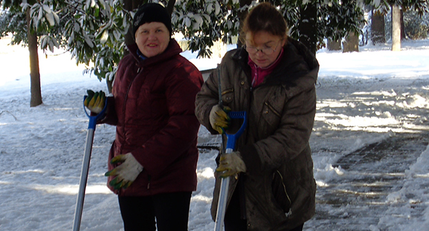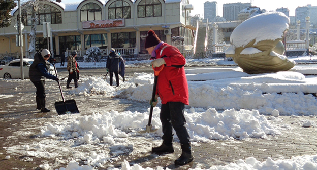 В ночь на 26 января 2016 года на территории Сочи прошел сильный снегопад, который осложнил движение транспорта в городе-курорте и окрестностях. На уборку улиц вышли сотрудники бюджетных сфер по указанию главы города. С утра снег продолжал идти, и в центре города высота снежного покрова достигла 10-20 сантиметров.