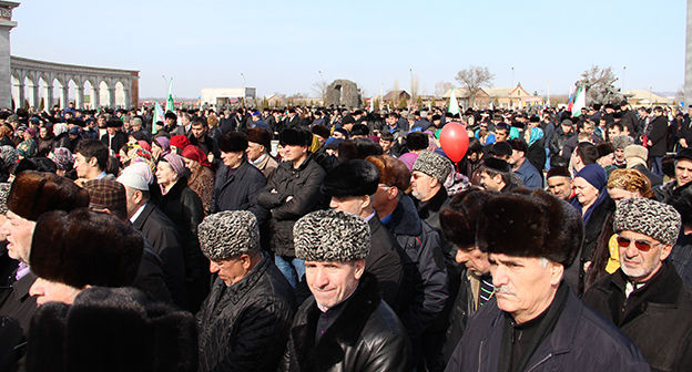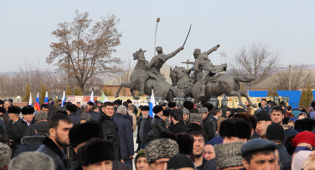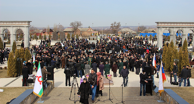 Митинг памяти на мемориальном комплексе Памяти и славы в Назрани. Фоторепортаж корреспондента "Кавказского узла" Магомеда Магомедова