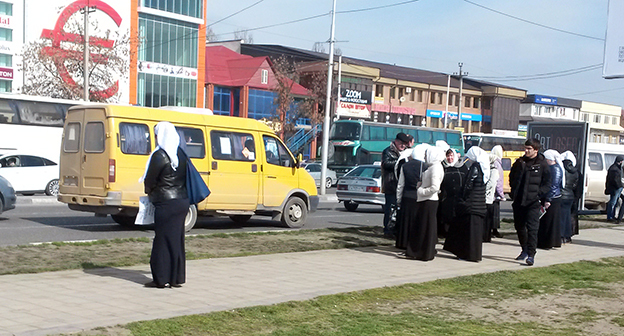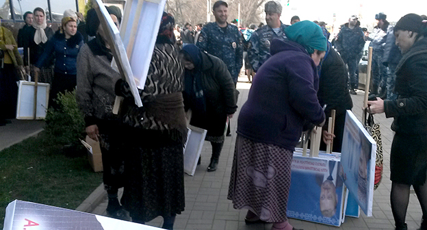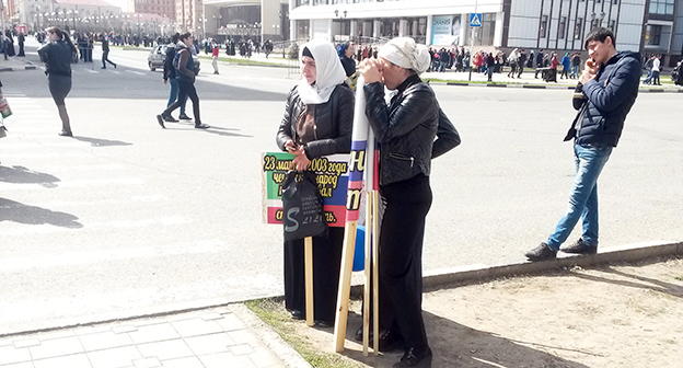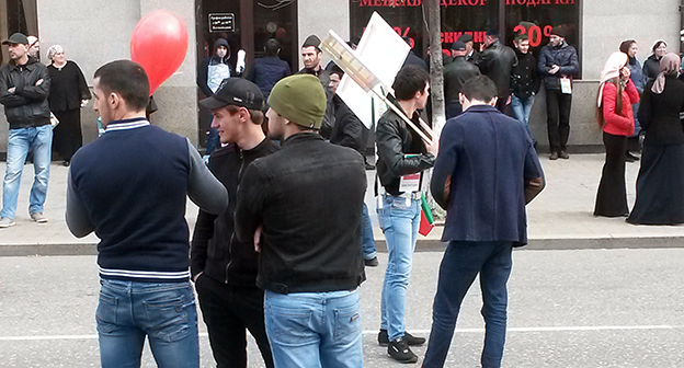 Призывы прийти на митинг распространяло чеченское телевидение. Бюджетники и студенты говорили, что их обязали привести на акцию своих родственников и знакомых.