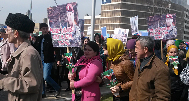 Митинг, посвященный годовщине принятия Конституции Чечни в Грозном. 23.03.2016. Фоторепортаж корреспондента "Кавказского узла"