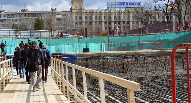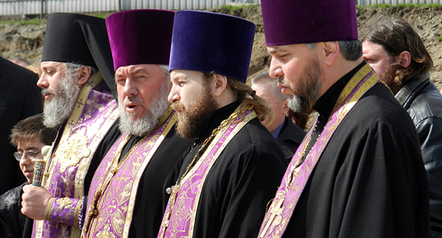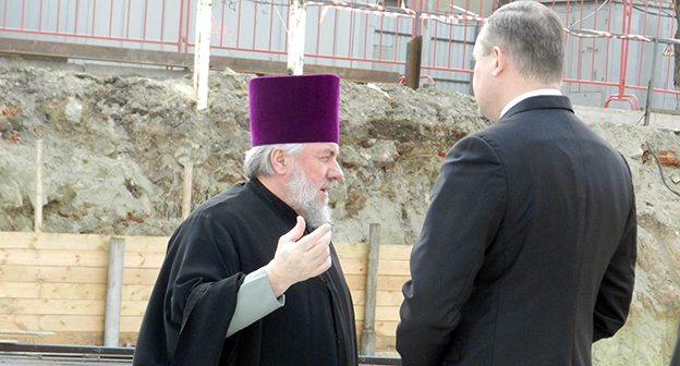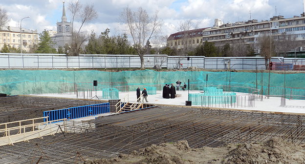 Закладка первого камня в фундамент собора Александра Невского в Волгограде на площади Павших борцов. Волгоград, 5 апреля 2016 года. Фоторепортаж корреспондента "Кавказского узла" Татьяны Филимоновой