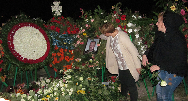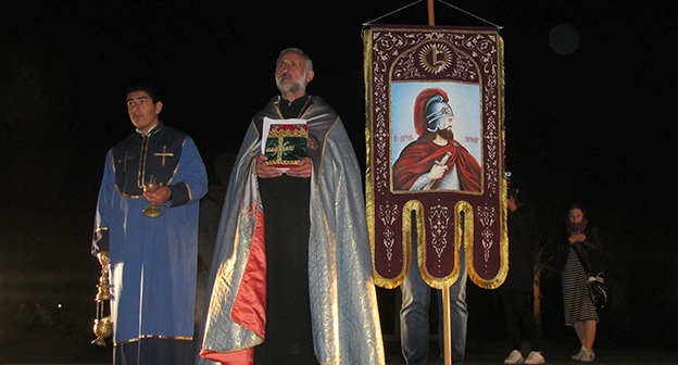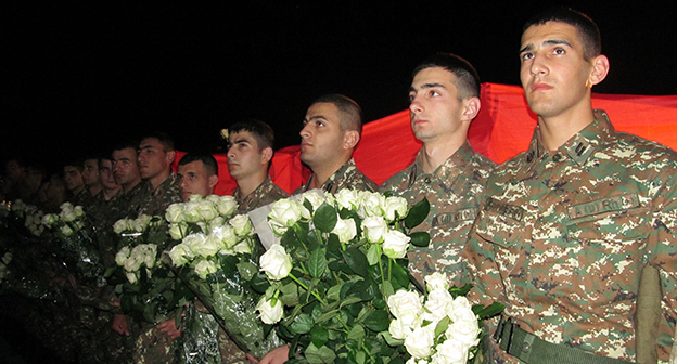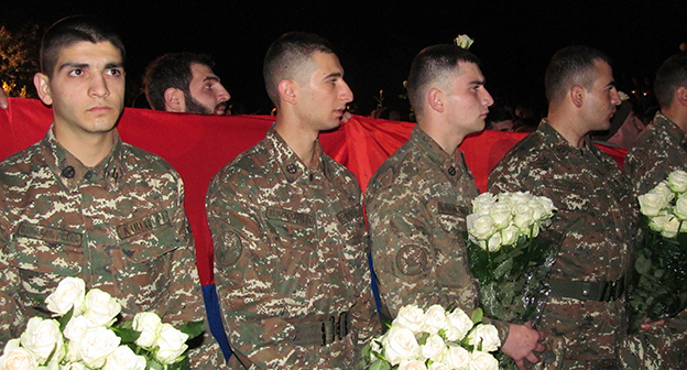 Армянское духовенство отслужило заупокойную литургию в память о погибших солдатах и офицерах у входа на военное кладбище, где похоронены герои войны в Нагорном Карабахе. После молебна участники акции памяти возложили цветы на могилы воинов-освободителей, а также солдат и офицеров, которые погибли в мирное время в результате нарушения перемирия.