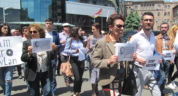 Активисты совершили шествие по улицам Еревана. Они передали в ереванский офис ООН письмо с требованием осудить нападение на Пайляна и обеспечить его безопасность.