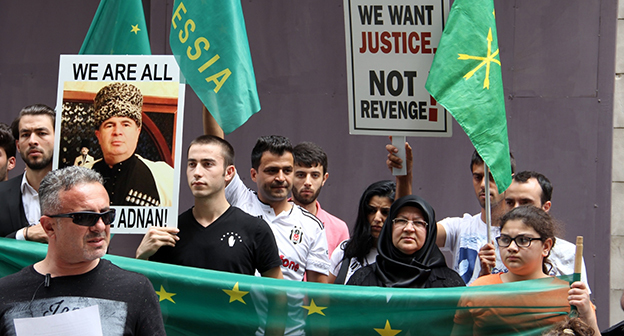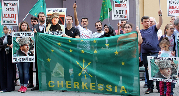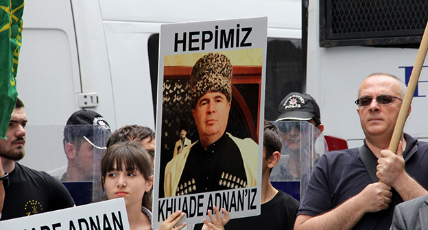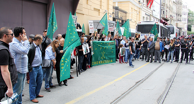 Протестная акция в связи с уголовным преследованием в Адыгее черкесского репатрианта Аднана Хуаде. Стамбул, 21 мая 2016 года. Фоторепортаж корреспондента "Кавказского узла" Магомеда Туаева
