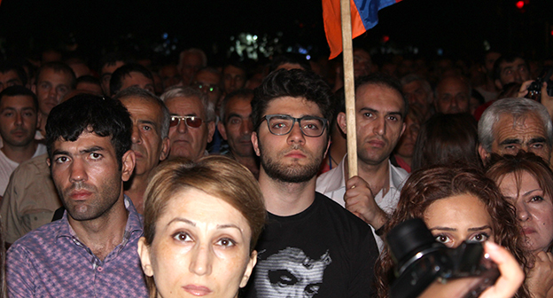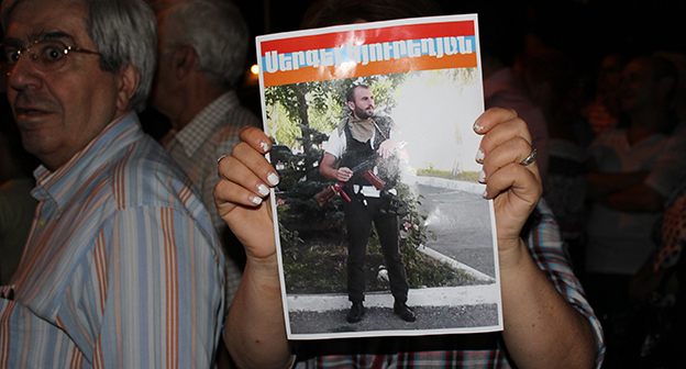 26 июля в Ереване состоялся очередной митинг в поддержку отряда “Сасна Црер”, захватившего полк полиции. Акция протеста прошла на улице Хоренаци, несмотря на призыв полиции к оппозиции перенести место митинга. Оппозиция заявила, что не собирается менять место проведения собраний.