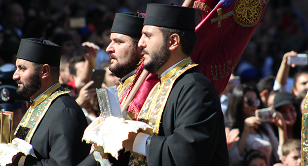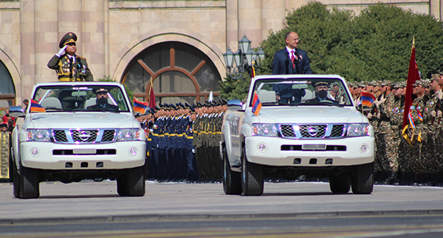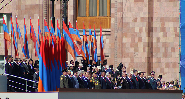 Торжественное шествие сопровождалось полетами военных истребителей. Парад завершился дефиле роты Почетного караула Вооруженных Сил Армении.