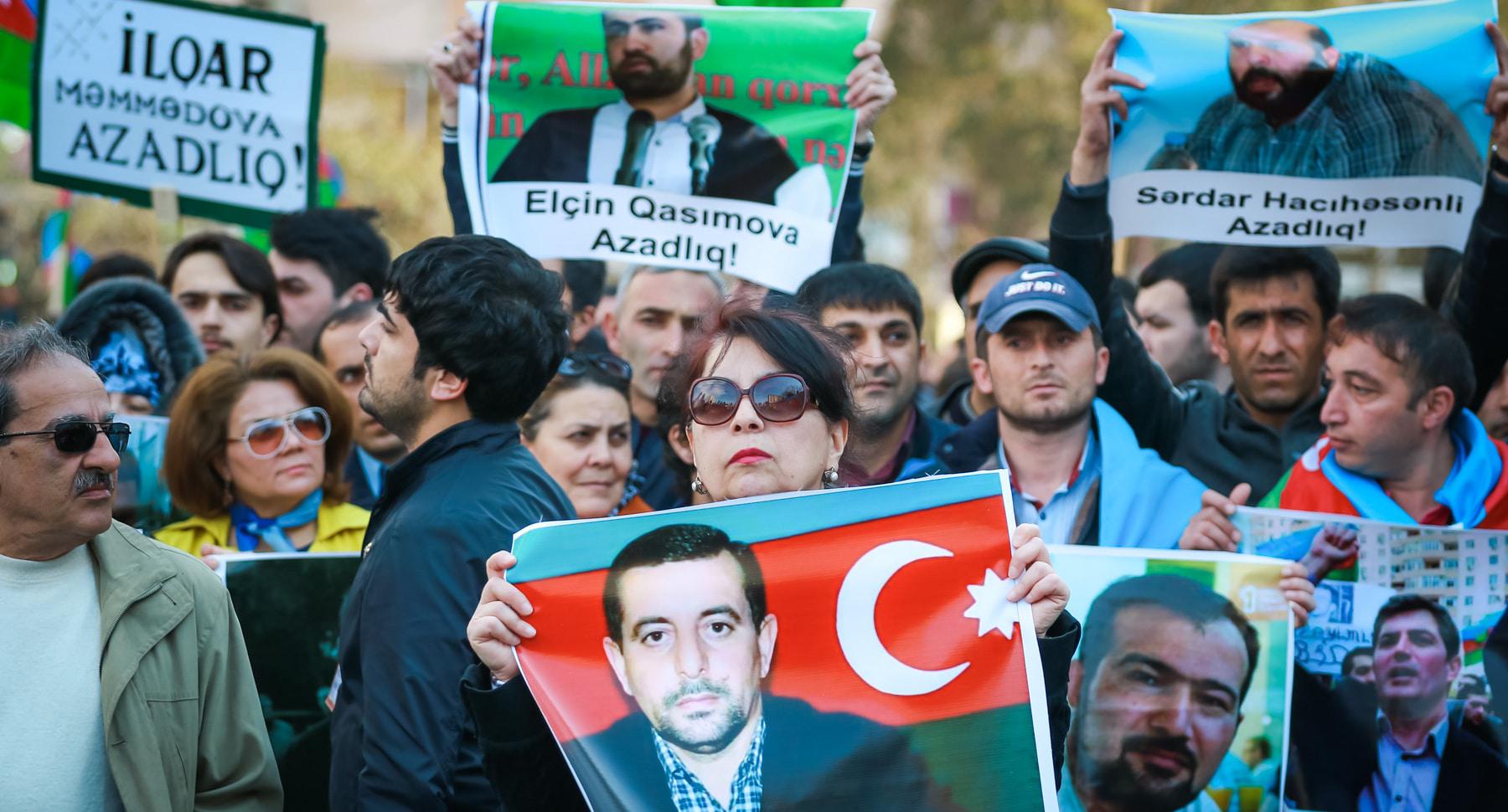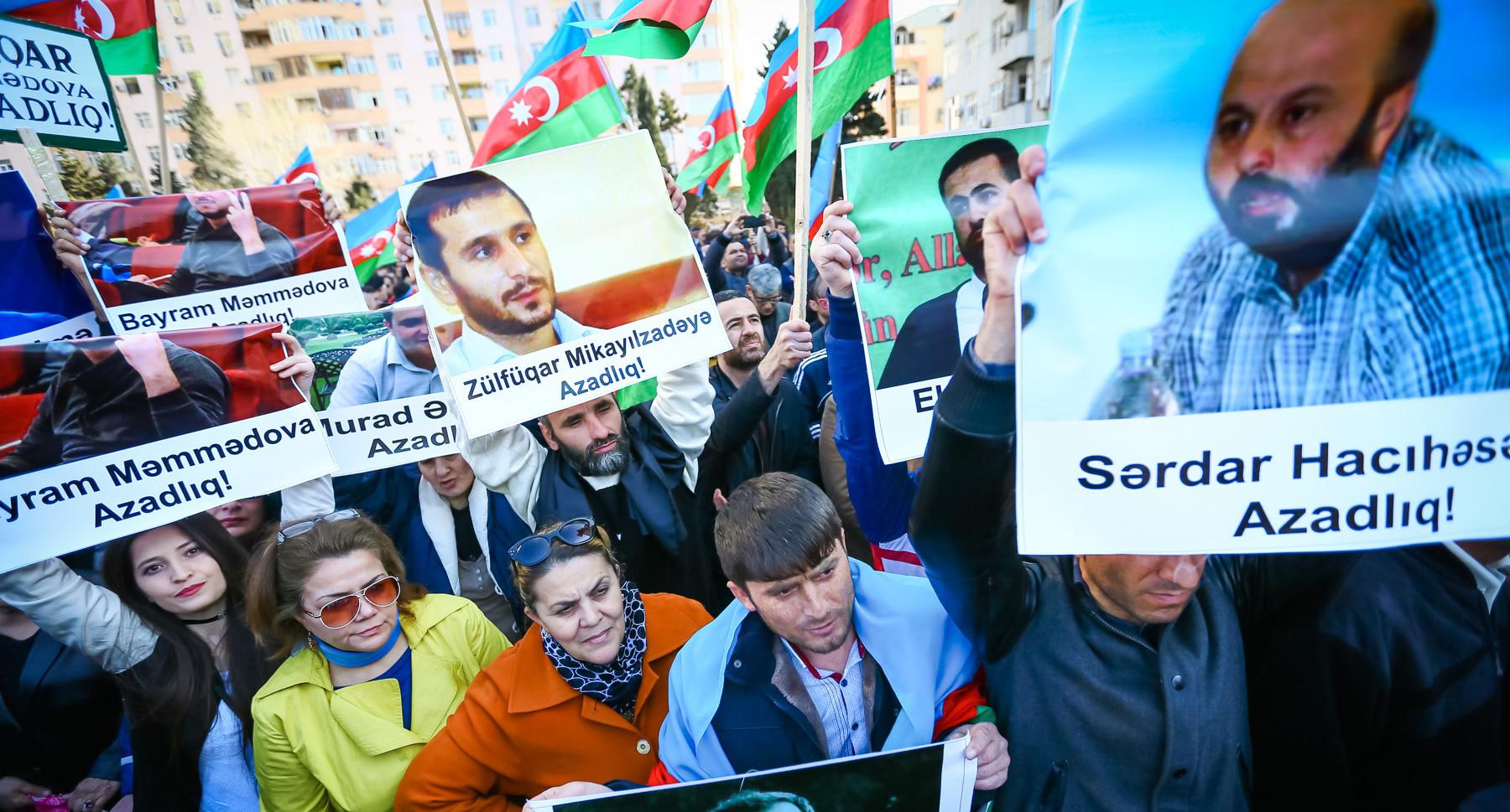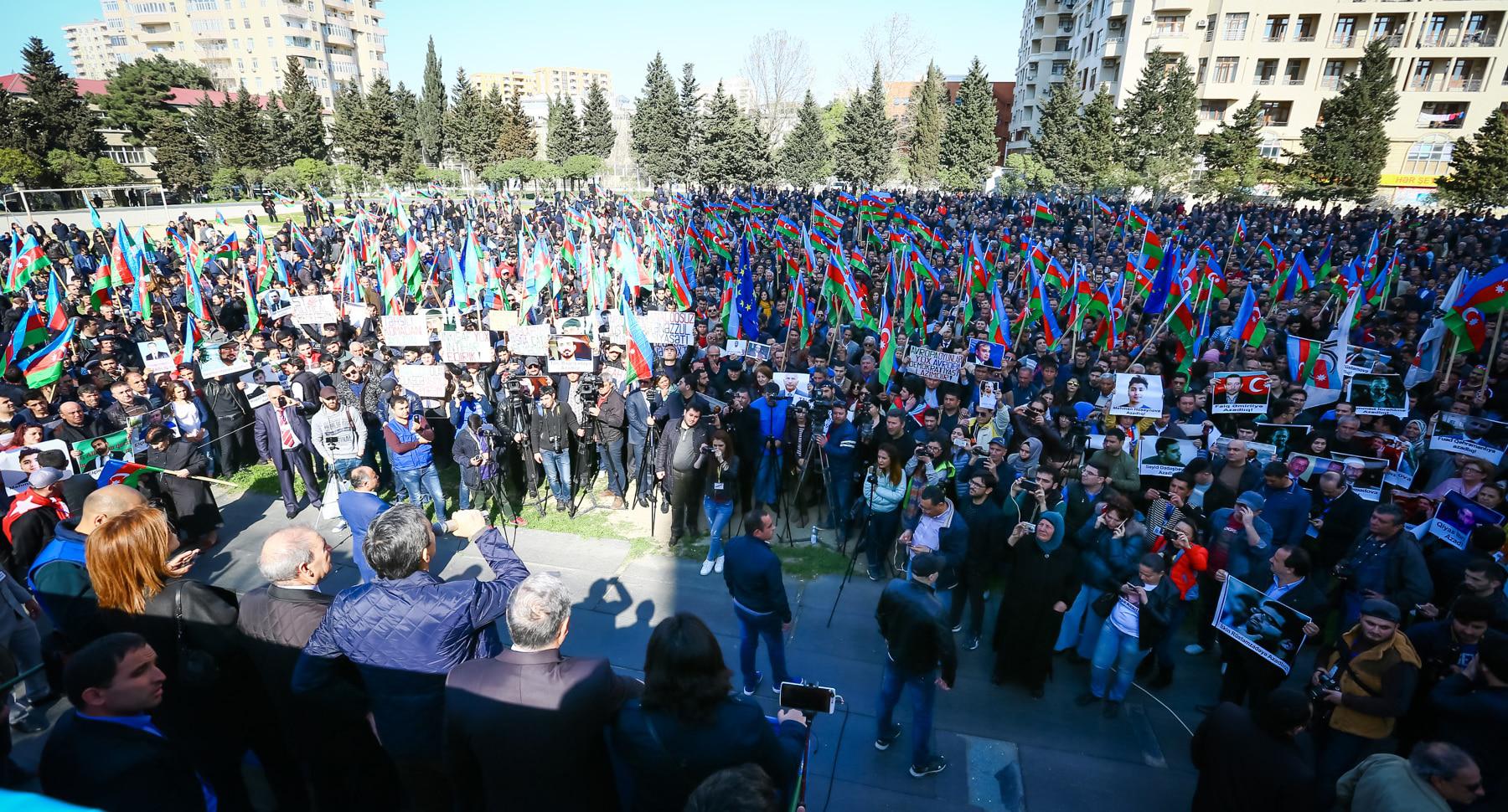 Митинг оппозиционного Национального совета демократических сил (НСДС) прошел 8 апреля 2017 года в Баку. Участники акции держали плакаты с лозунгами и портретами политзаключенных, флаги Азербайджана и Евросоюза. Демонстранты скандировали: “Свободу!”, “В отставку!”, “Нет грабежу!”, “Азербайджан!”. Митинг завершился принятием резолюции, в которой решительно осуждаются коррупция и попытки установить в Азербайджане “семейную власть”, содержатся требования решить социальные проблемы населения и освободить политзаключенных. Фоторепортаж корреспондента “Кавказского узла” Азиза Каримова