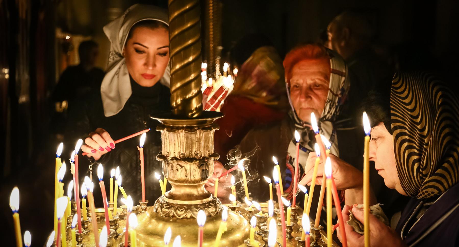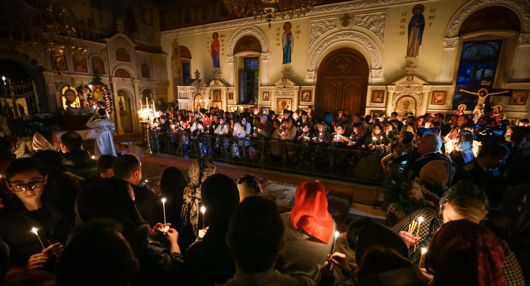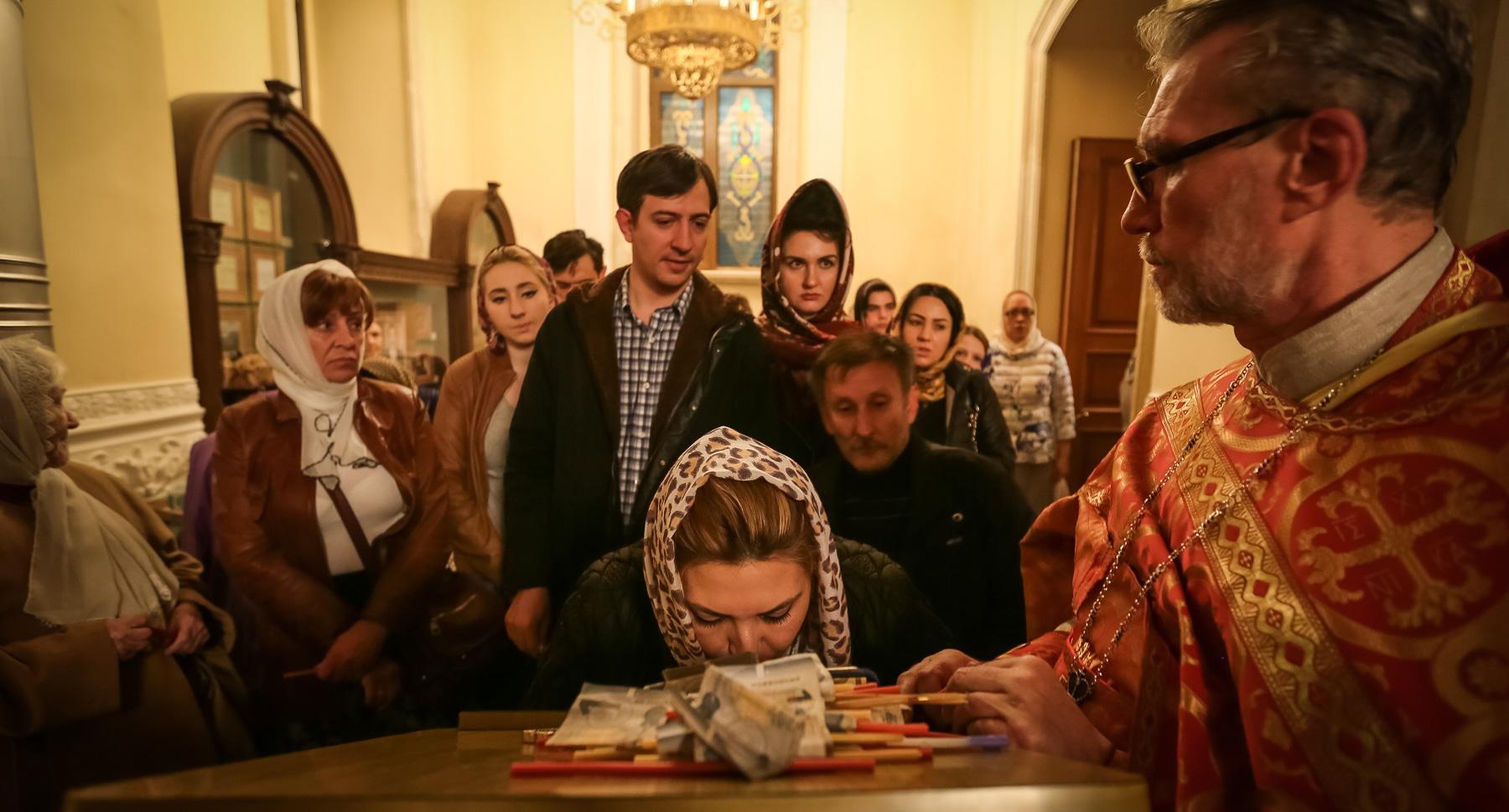 В кафедральном соборе Святых Жен-мироносиц в Баку 16 апреля состоялись главные празднества по случаю Пасхи. В соборе прошла пасхальная литургия с участием главы Бакинско-Азербайджанской епархии – архиепископа Александра, затем состоялся крестный ход. На празднества в храме пришли более полутысячи православных верующих, среди них было много молодежи. В зале собора были замечены и иностранцы, оказавшиеся на праздник в Баку, и представители других религий. Они внимательно и с интересом наблюдали за происходящим. Православные верующие совершили молитвы, зажгли свечи. Были освящены куличи. Фоторепортаж Азиза Каримова для “Кавказского узла”