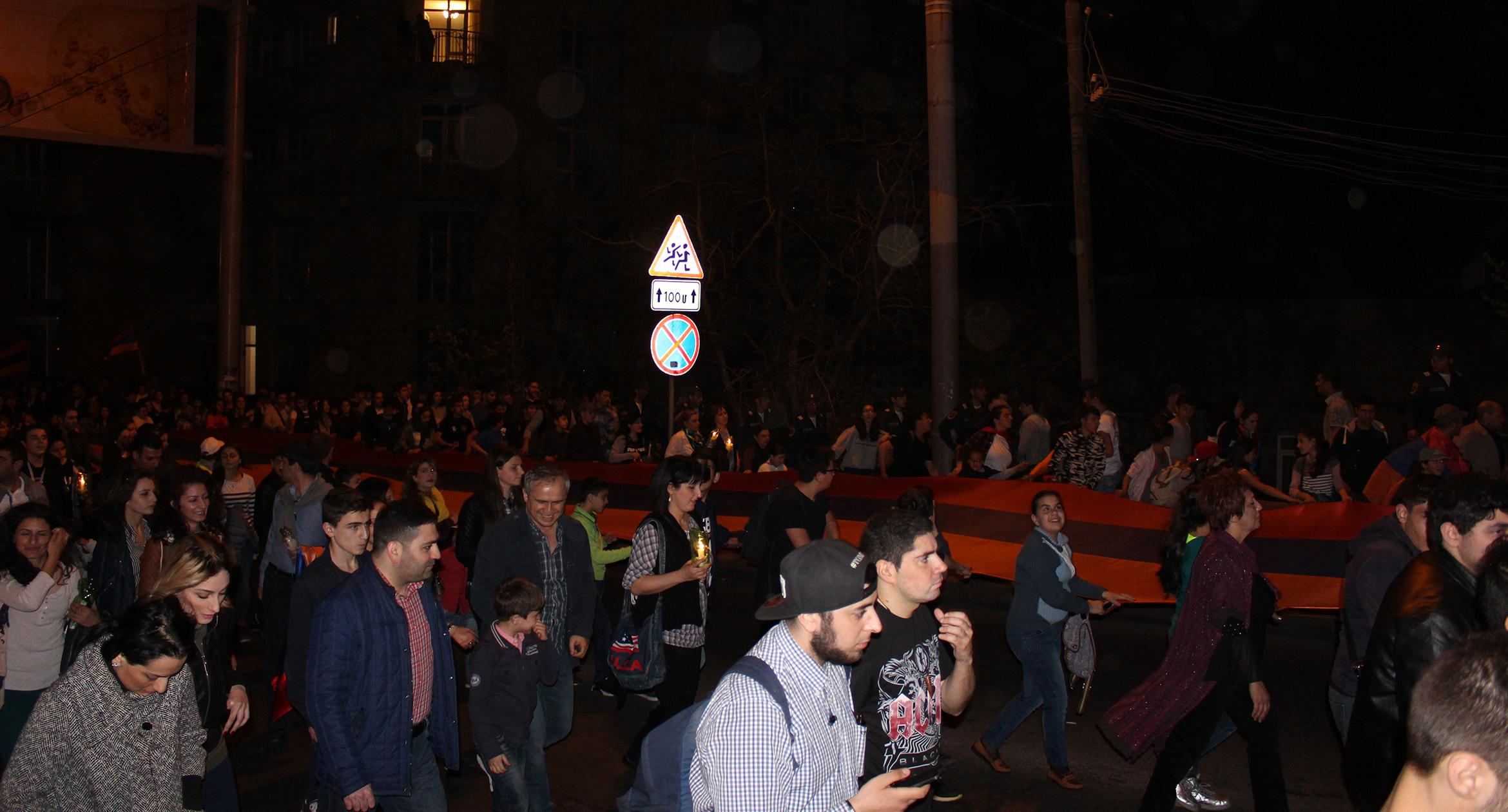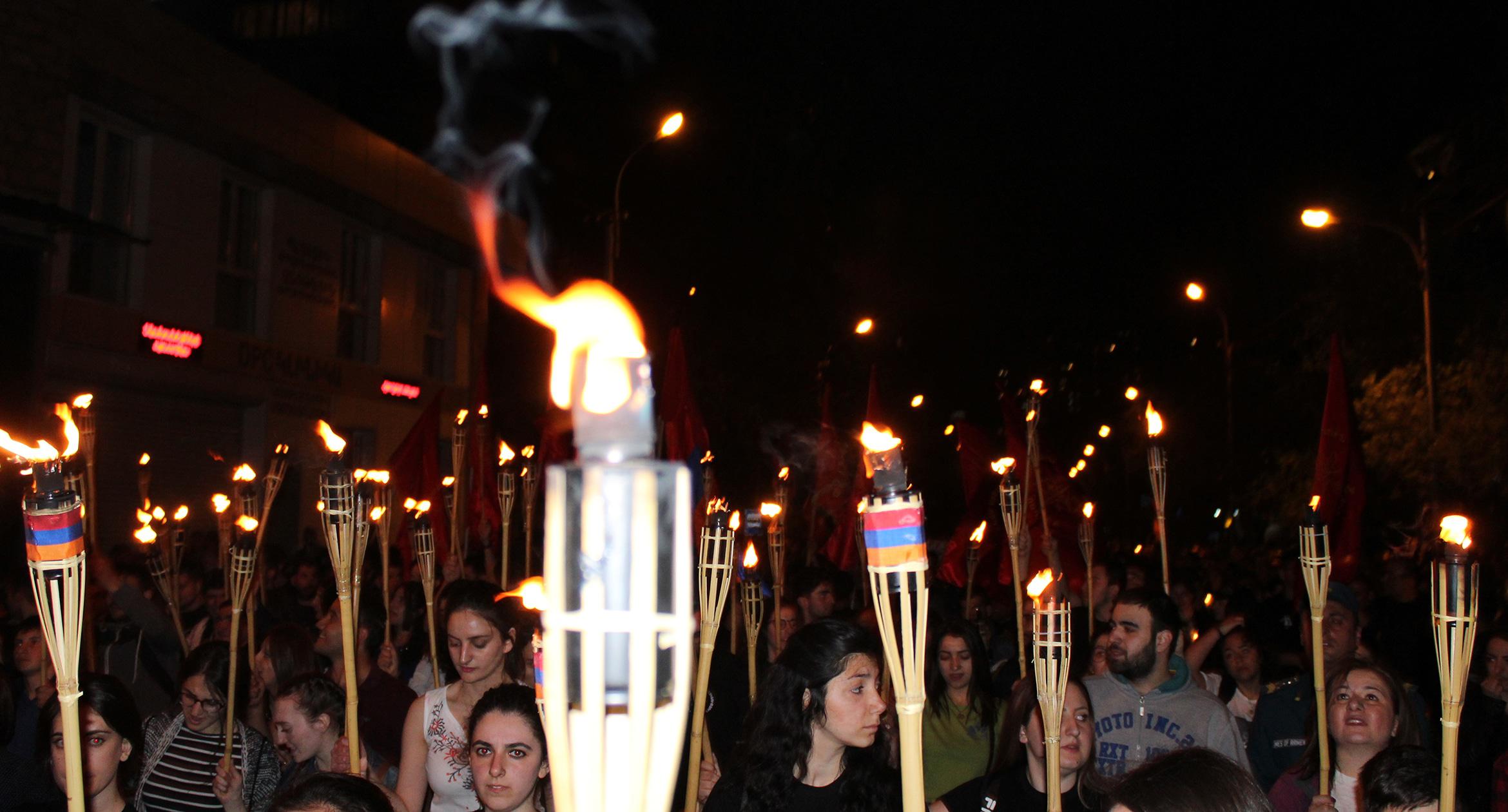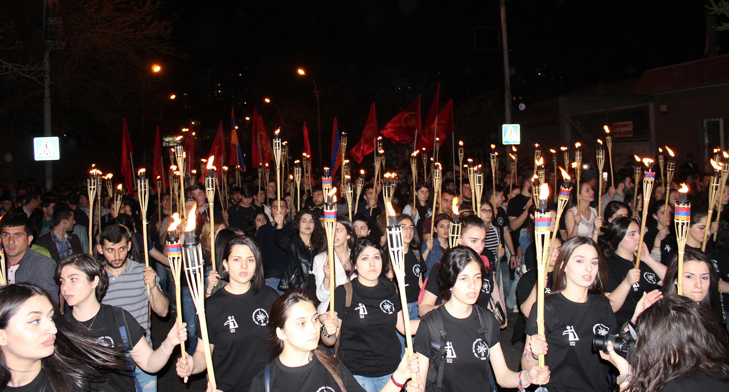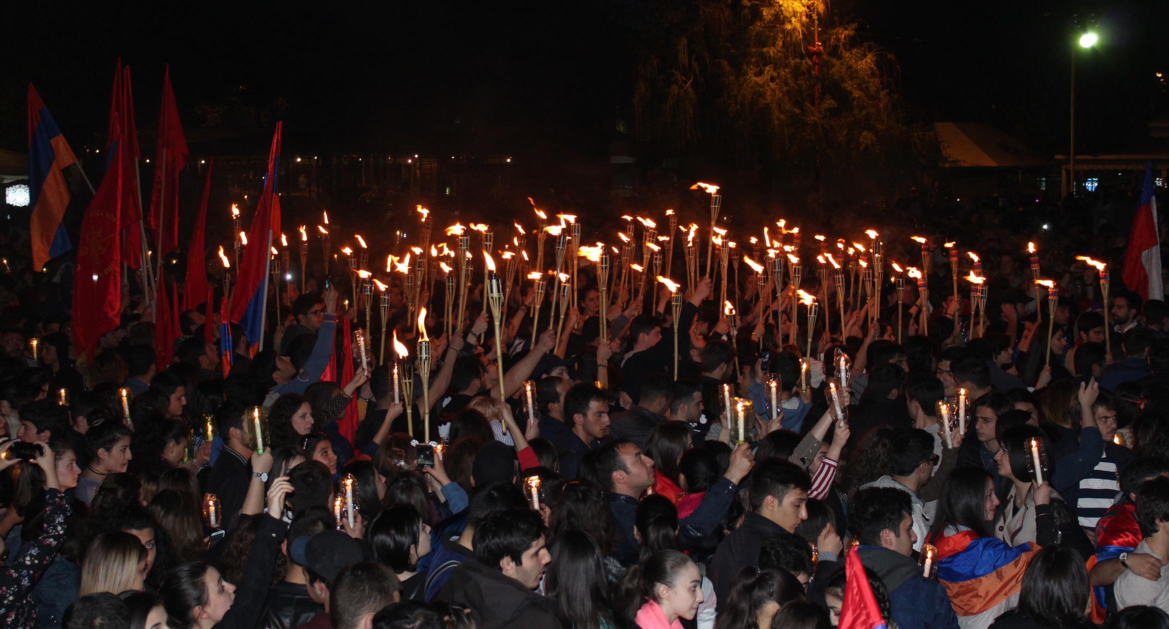23 апреля в Ереване состоялось факельное шествие в память жертв Геноцида армян в 1915-1923 годах в Османской Турции. Слоганом мероприятия стало “От признания до реституции!”. Участники акции с факелами и лампадами в руках прошлись от площади Свободы до Мемориального комплекса “Цицернакаберд”, возложить цветы к Вечному огню. Фоторепортаж Тиграна Петросяна для “Кавказского узла”