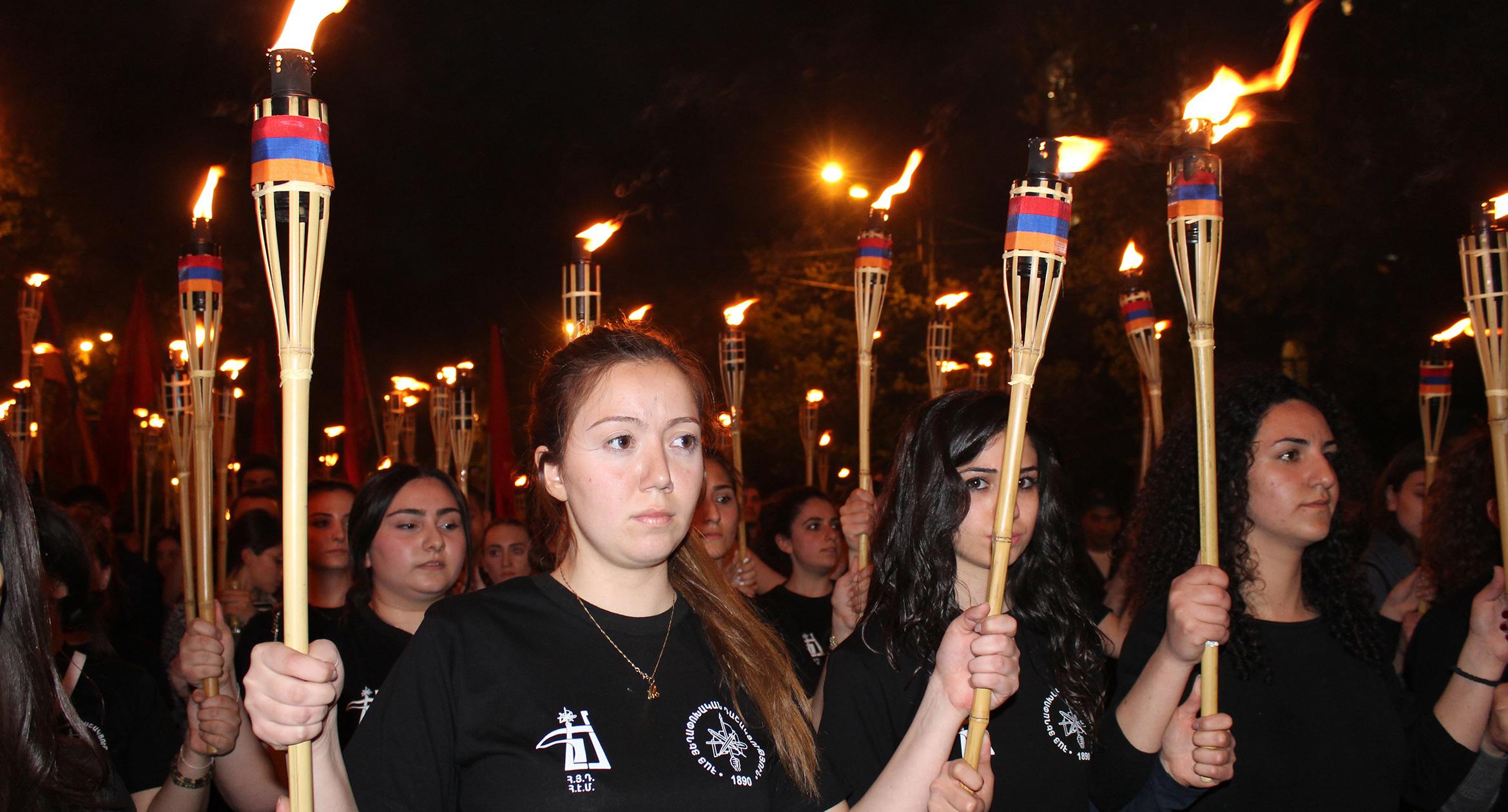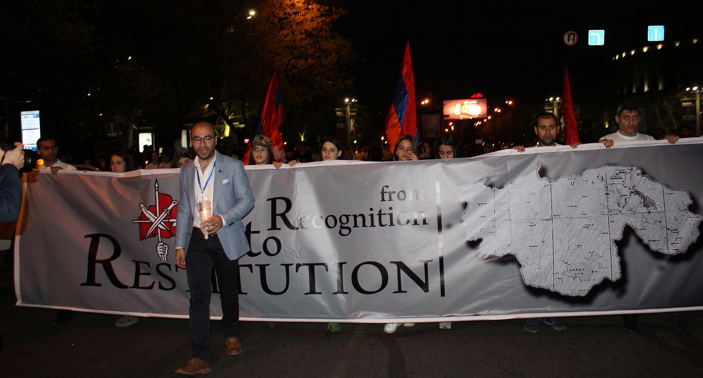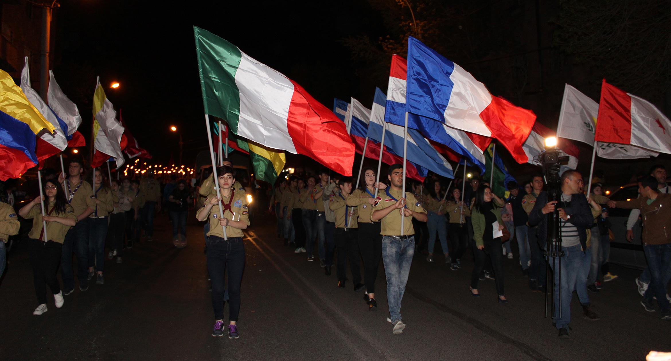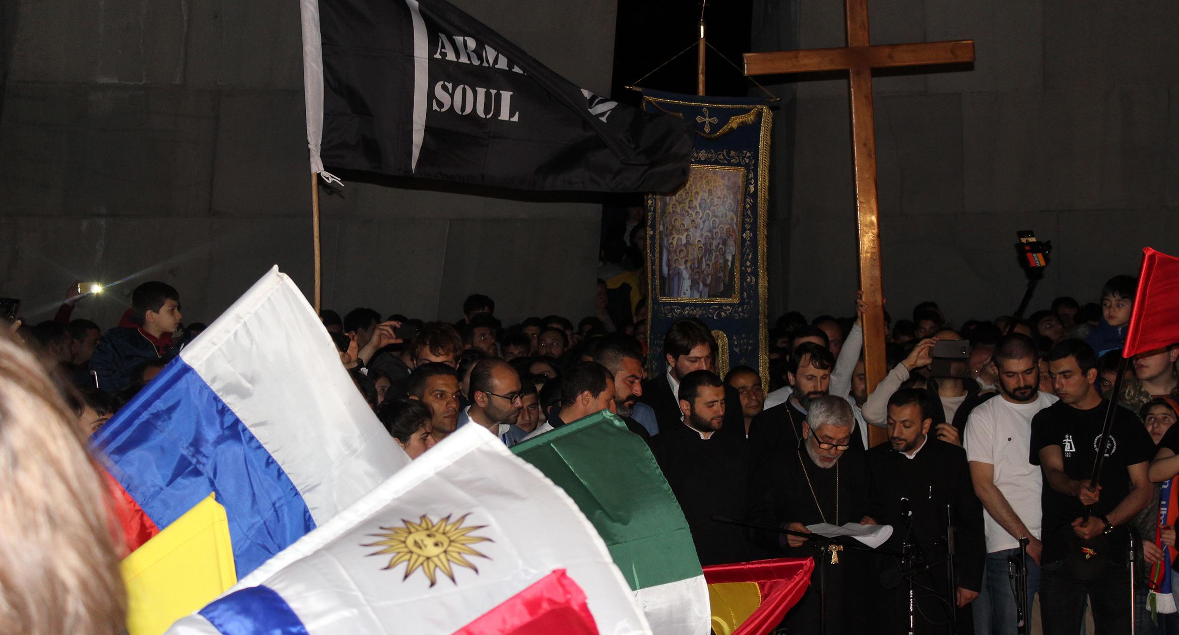 23 апреля в Ереване состоялось факельное шествие в память жертв Геноцида армян в 1915-1923 годах в Османской Турции. Слоганом мероприятия стало “От признания до реституции!”. Участники акции с факелами и лампадами в руках прошлись от площади Свободы до Мемориального комплекса “Цицернакаберд”, возложить цветы к Вечному огню. Фоторепортаж Тиграна Петросяна для “Кавказского узла”