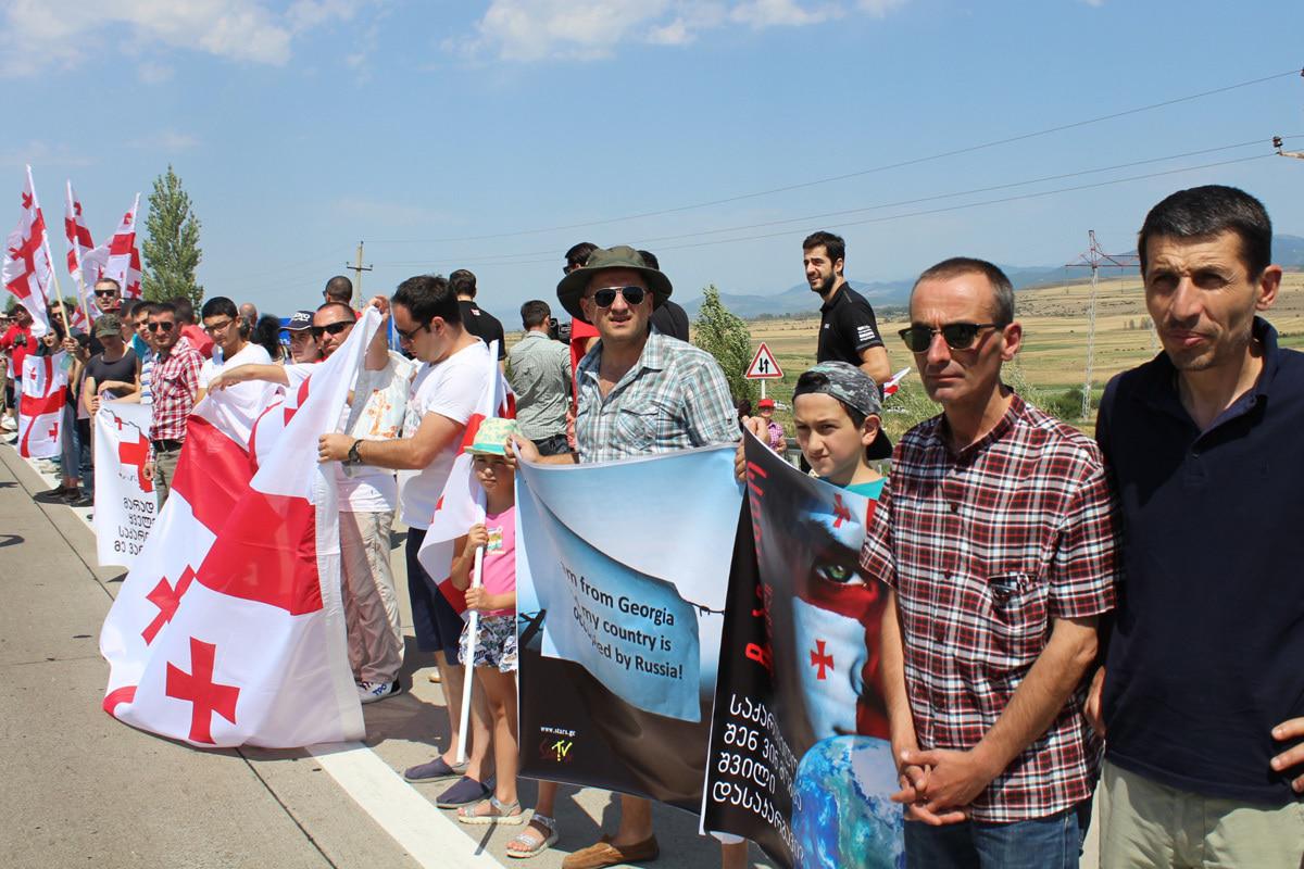 Акция “Сила в единстве” прошла 8 августа 2017 года в приграничном грузинском регионе Шида Картли. Ее участники выстроились в “живую цепь” и почтили память погибших в пятидневной грузино-российской войне. Они обвинили Россию в оккупации территорий Грузии. Фоторепортаж корреспондента “Кавказского узла” Инны Кукуджановой.