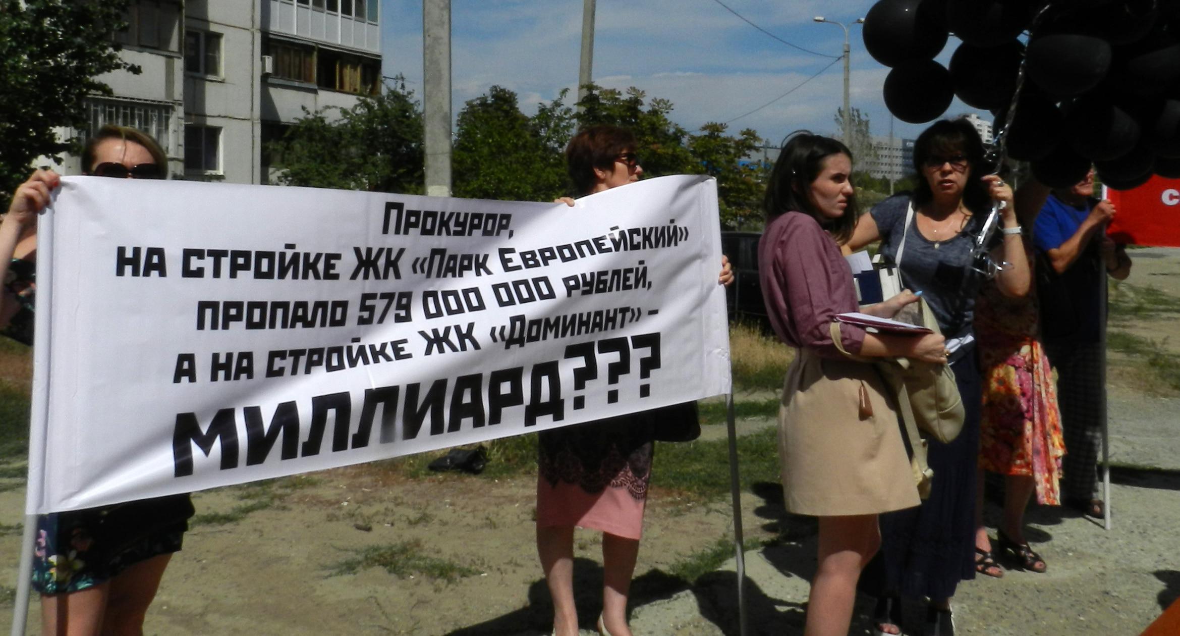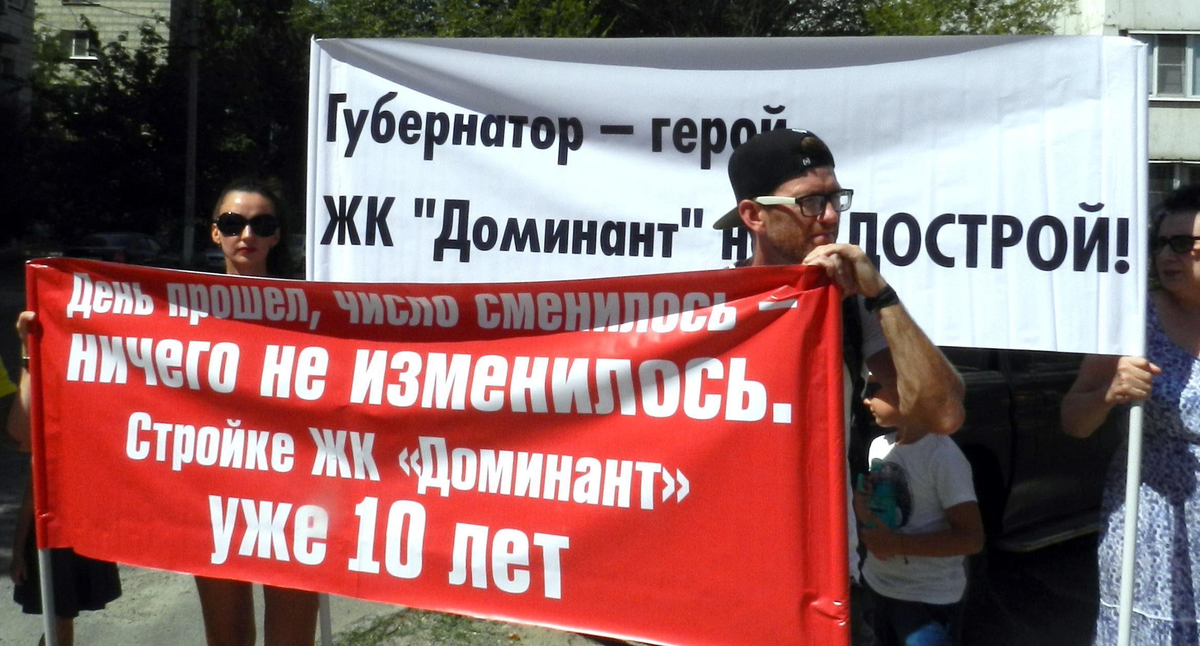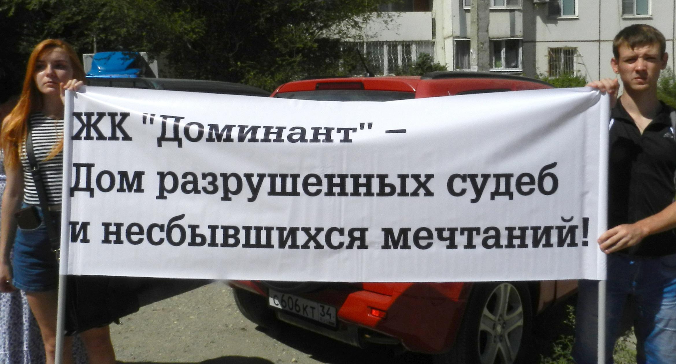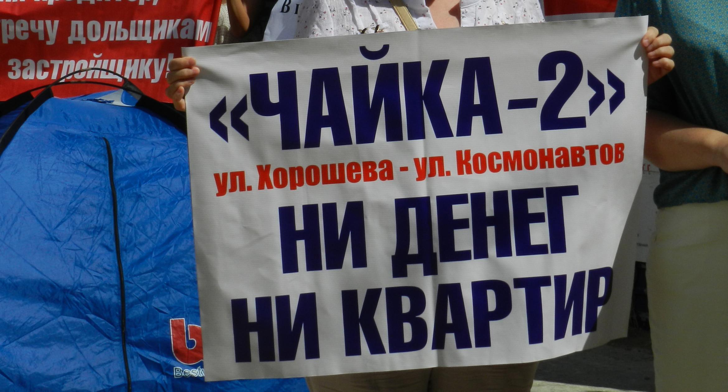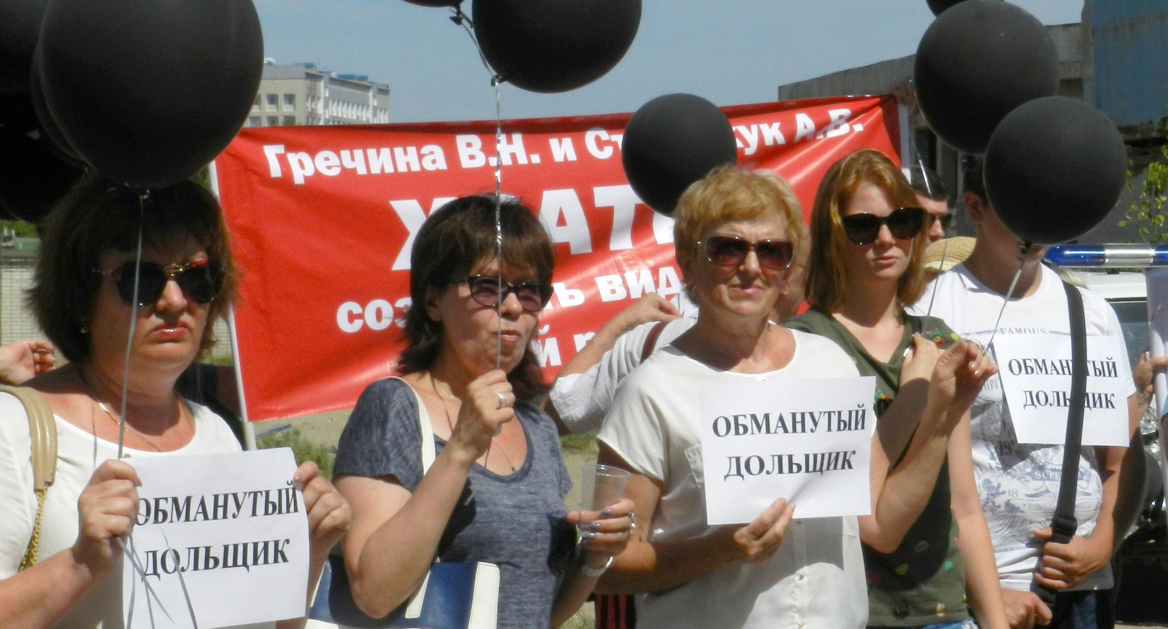 305 черных воздушных шаров запустили в небо обманутые дольщики волгоградского ЖК «Доминант» – именно столько семей вложили деньги в строительство, которое ведется уже 10 лет. В знак протеста против бездействия властей дольщики установили три палатки, показывая, что ожидать свои квартиры они вынуждены буквально в палаточных условиях. В свою очередь дольщики ЖК «Парк Европейский», собравшиеся на митинг у офиса застройщика, принесли с собой банку красной краски и написали на заборе «Путин, помоги обманутым дольщикам!». О том, как на улицах Волгограда собственники недостроенных квартир добиваются своего жилья, фоторепортаж корреспондента “Кавказского узла” Татьяны Филимоновой с митингов 20 августа.
