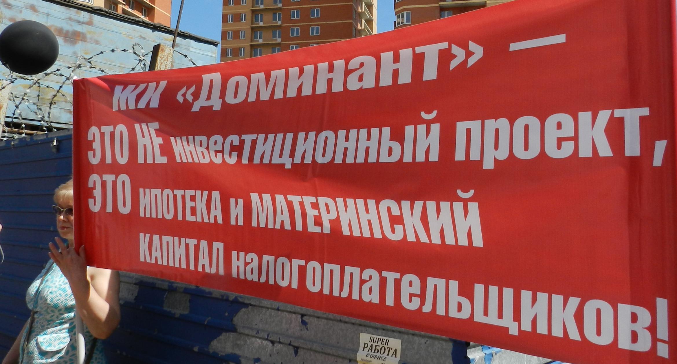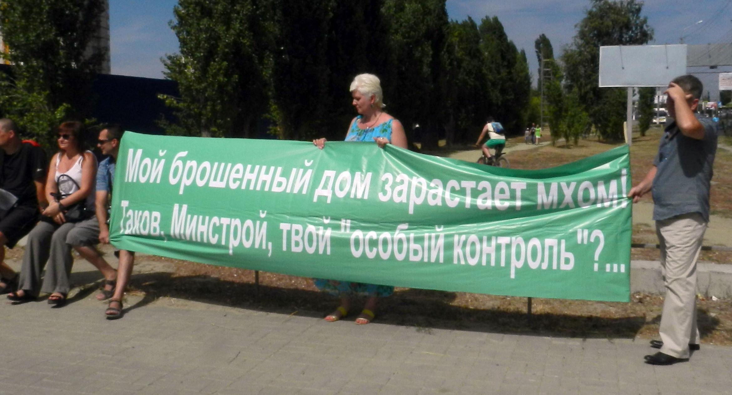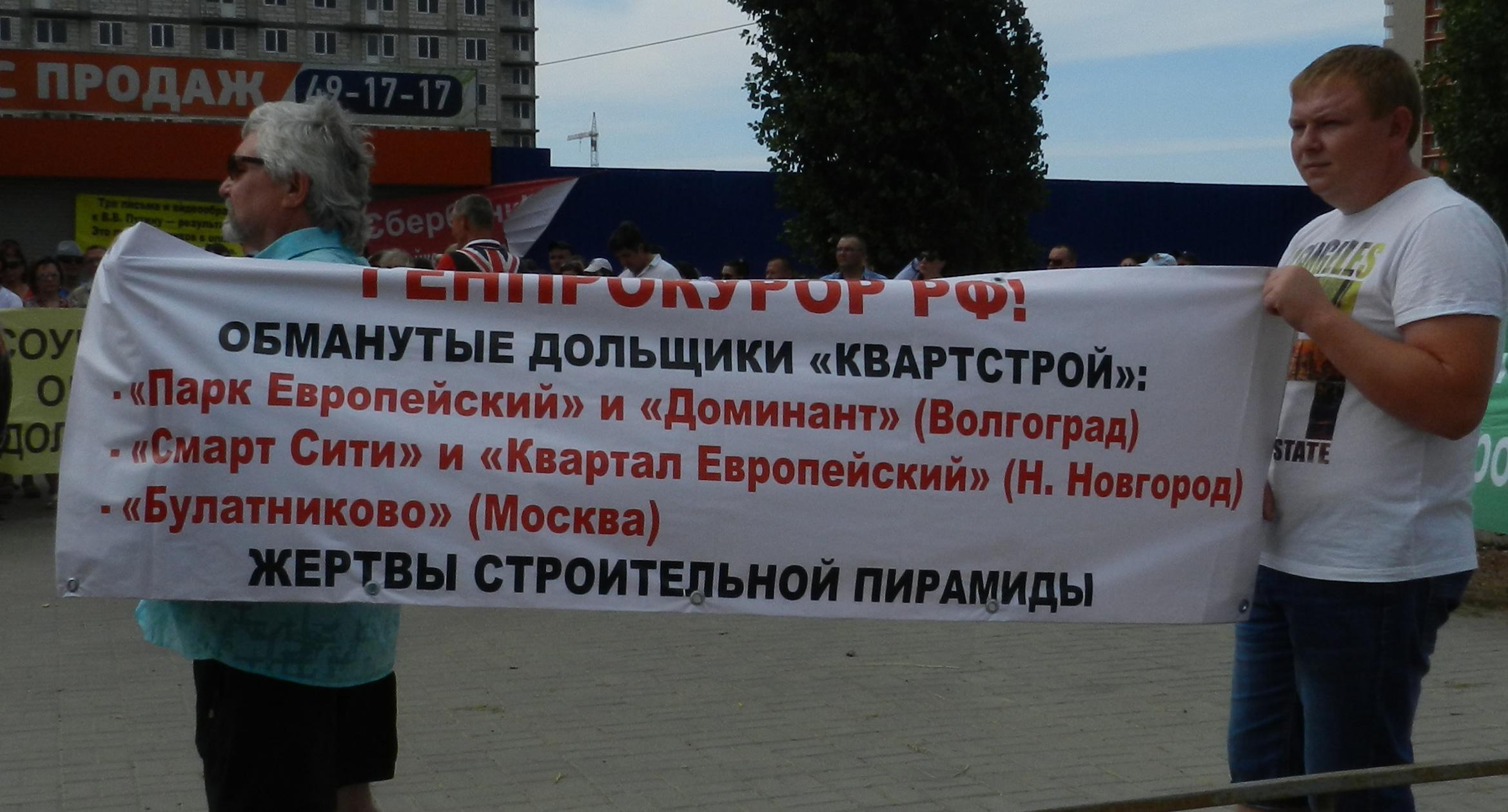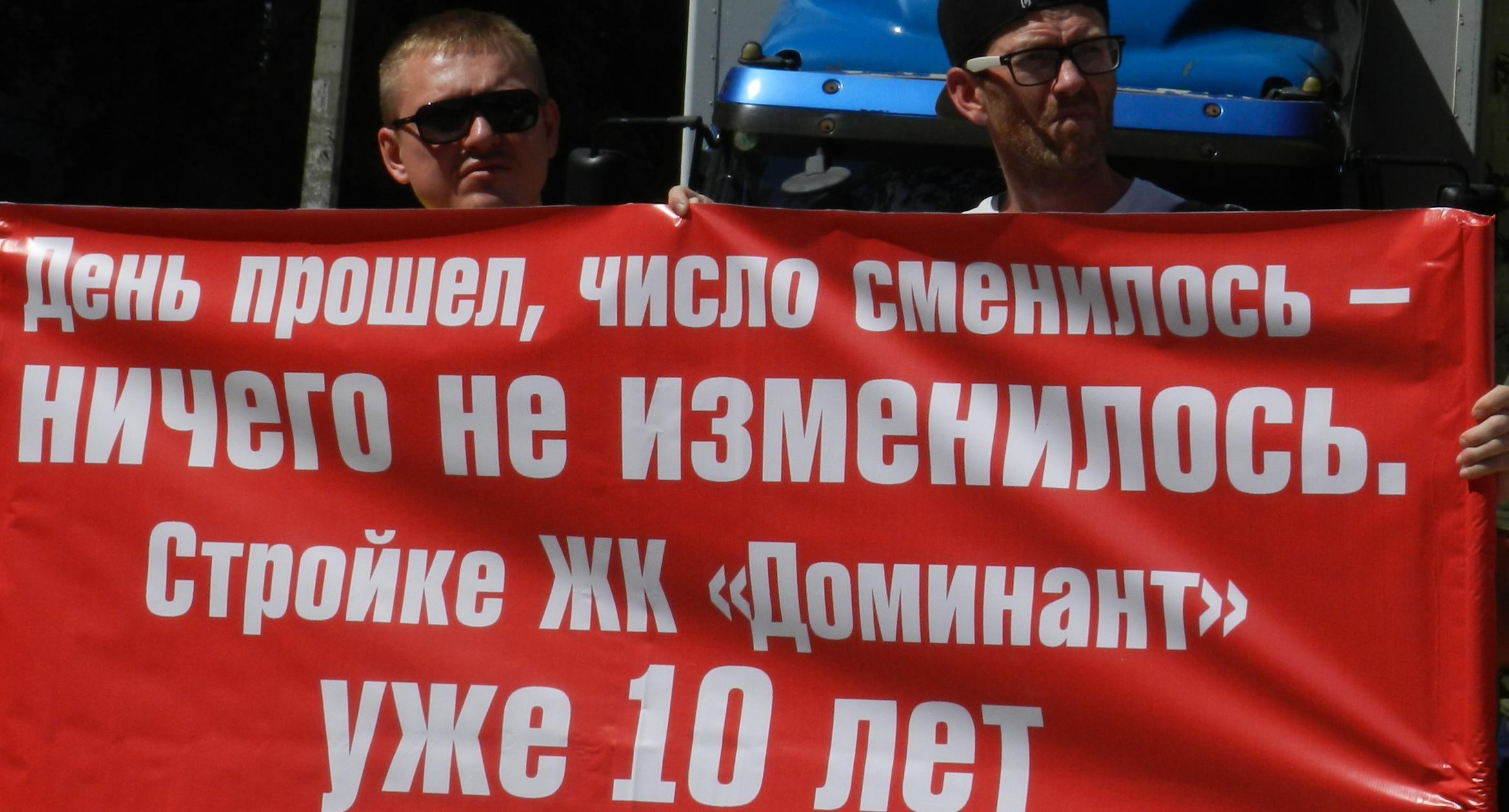 305 черных воздушных шаров запустили в небо обманутые дольщики волгоградского ЖК «Доминант» – именно столько семей вложили деньги в строительство, которое ведется уже 10 лет. В знак протеста против бездействия властей дольщики установили три палатки, показывая, что ожидать свои квартиры они вынуждены буквально в палаточных условиях. В свою очередь дольщики ЖК «Парк Европейский», собравшиеся на митинг у офиса застройщика, принесли с собой банку красной краски и написали на заборе «Путин, помоги обманутым дольщикам!». О том, как на улицах Волгограда собственники недостроенных квартир добиваются своего жилья, фоторепортаж корреспондента “Кавказского узла” Татьяны Филимоновой с митингов 20 августа.