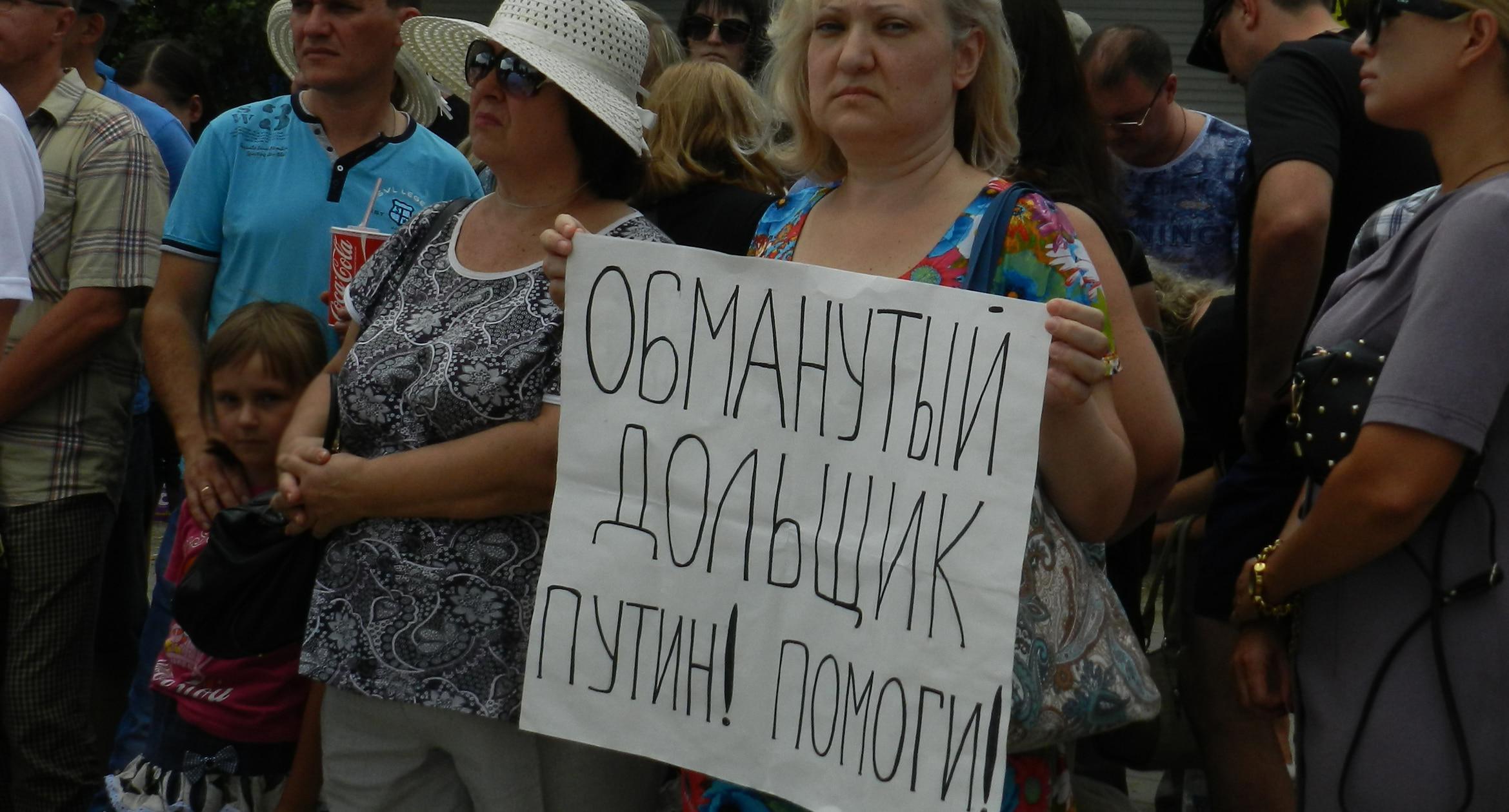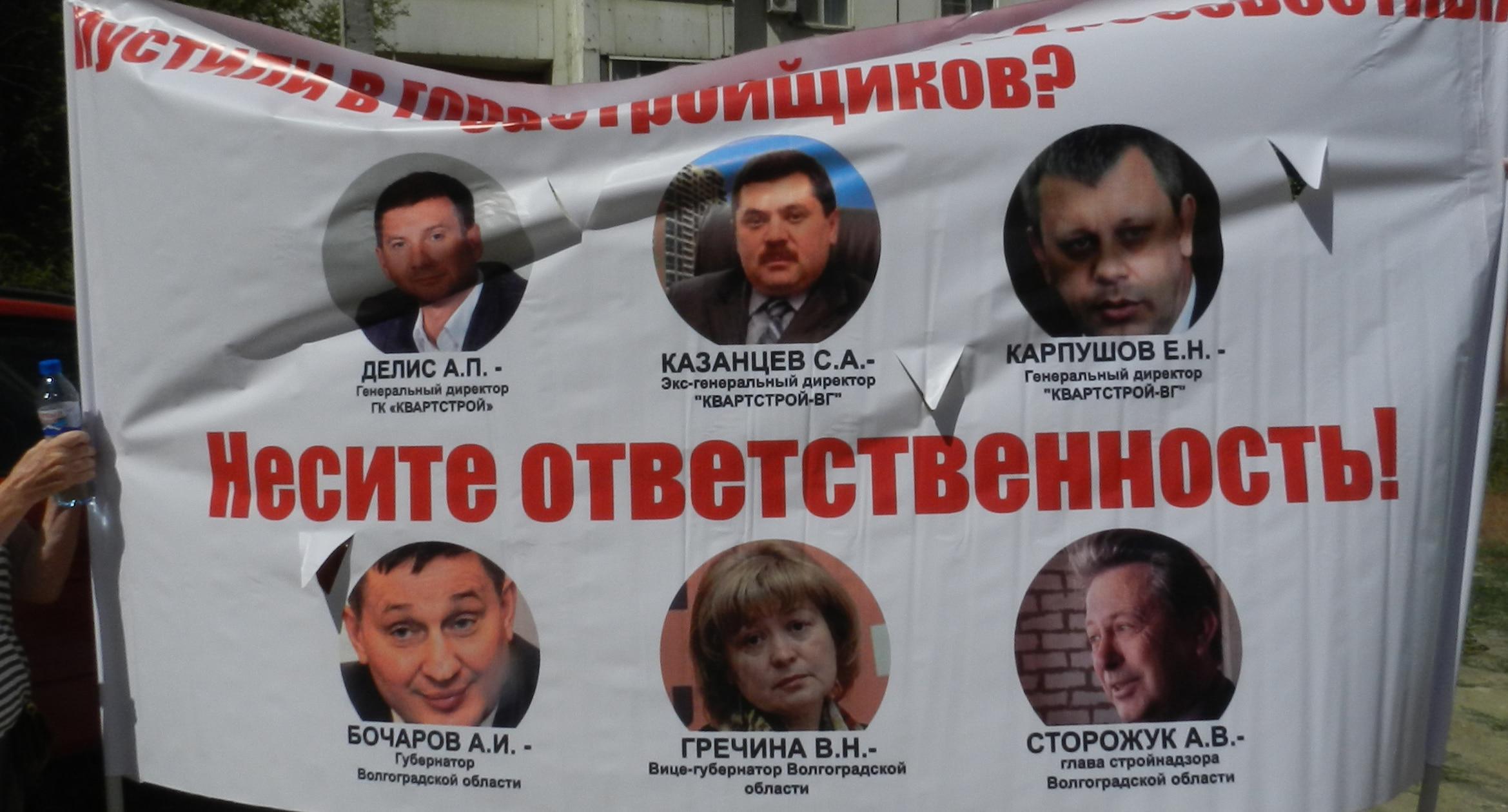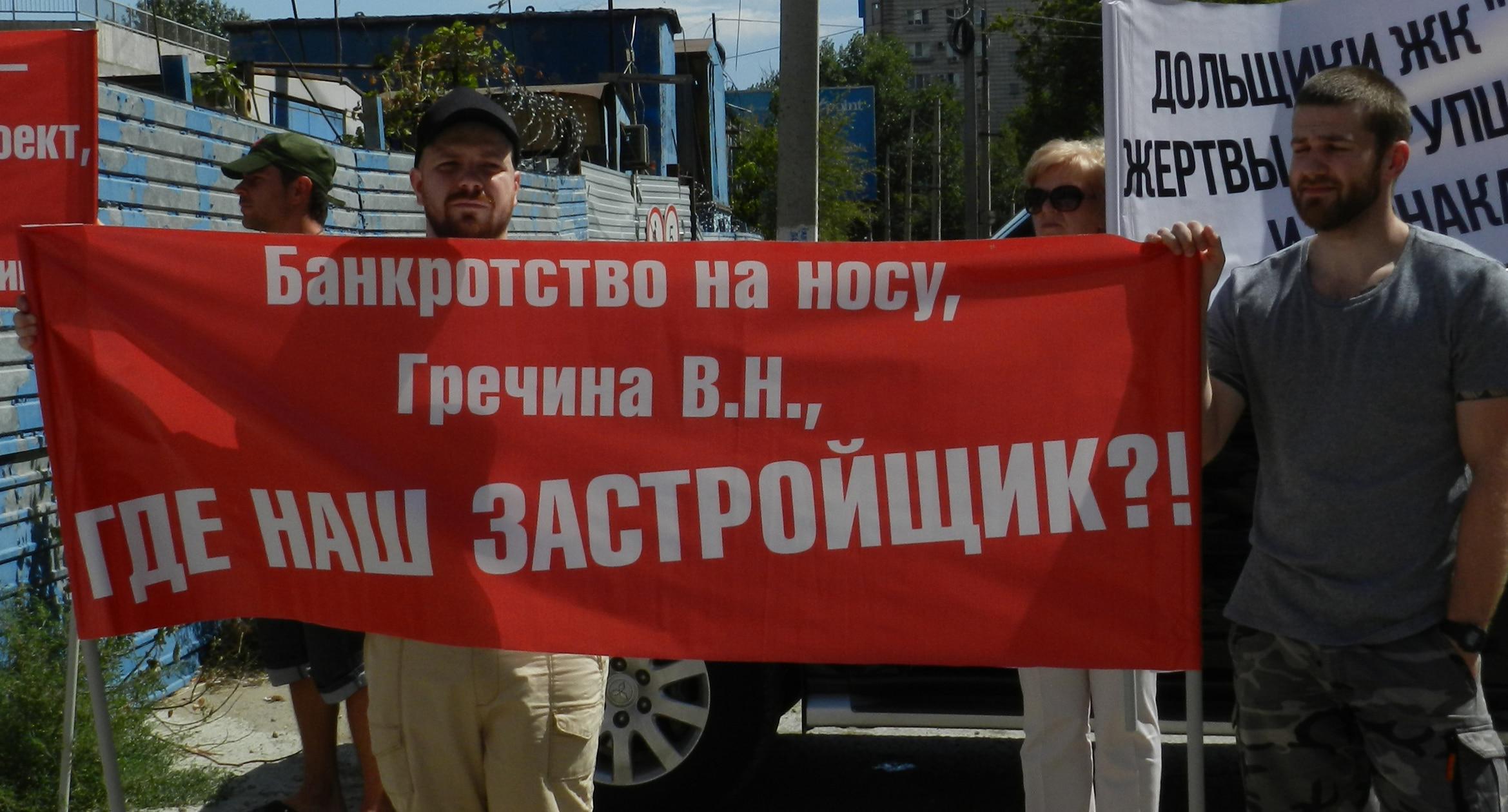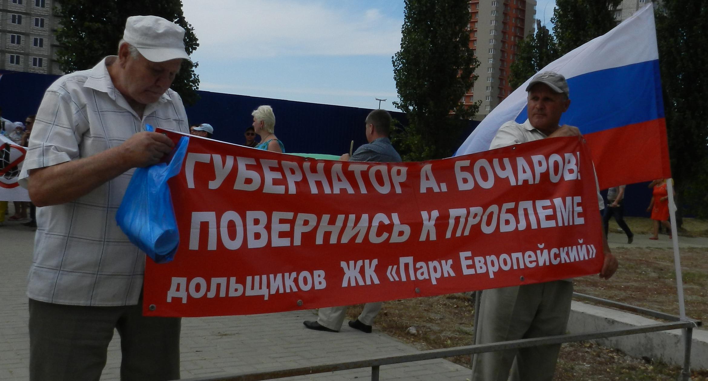 305 черных воздушных шаров запустили в небо обманутые дольщики волгоградского ЖК «Доминант» – именно столько семей вложили деньги в строительство, которое ведется уже 10 лет. В знак протеста против бездействия властей дольщики установили три палатки, показывая, что ожидать свои квартиры они вынуждены буквально в палаточных условиях. В свою очередь дольщики ЖК «Парк Европейский», собравшиеся на митинг у офиса застройщика, принесли с собой банку красной краски и написали на заборе «Путин, помоги обманутым дольщикам!». О том, как на улицах Волгограда собственники недостроенных квартир добиваются своего жилья, фоторепортаж корреспондента “Кавказского узла” Татьяны Филимоновой с митингов 20 августа.