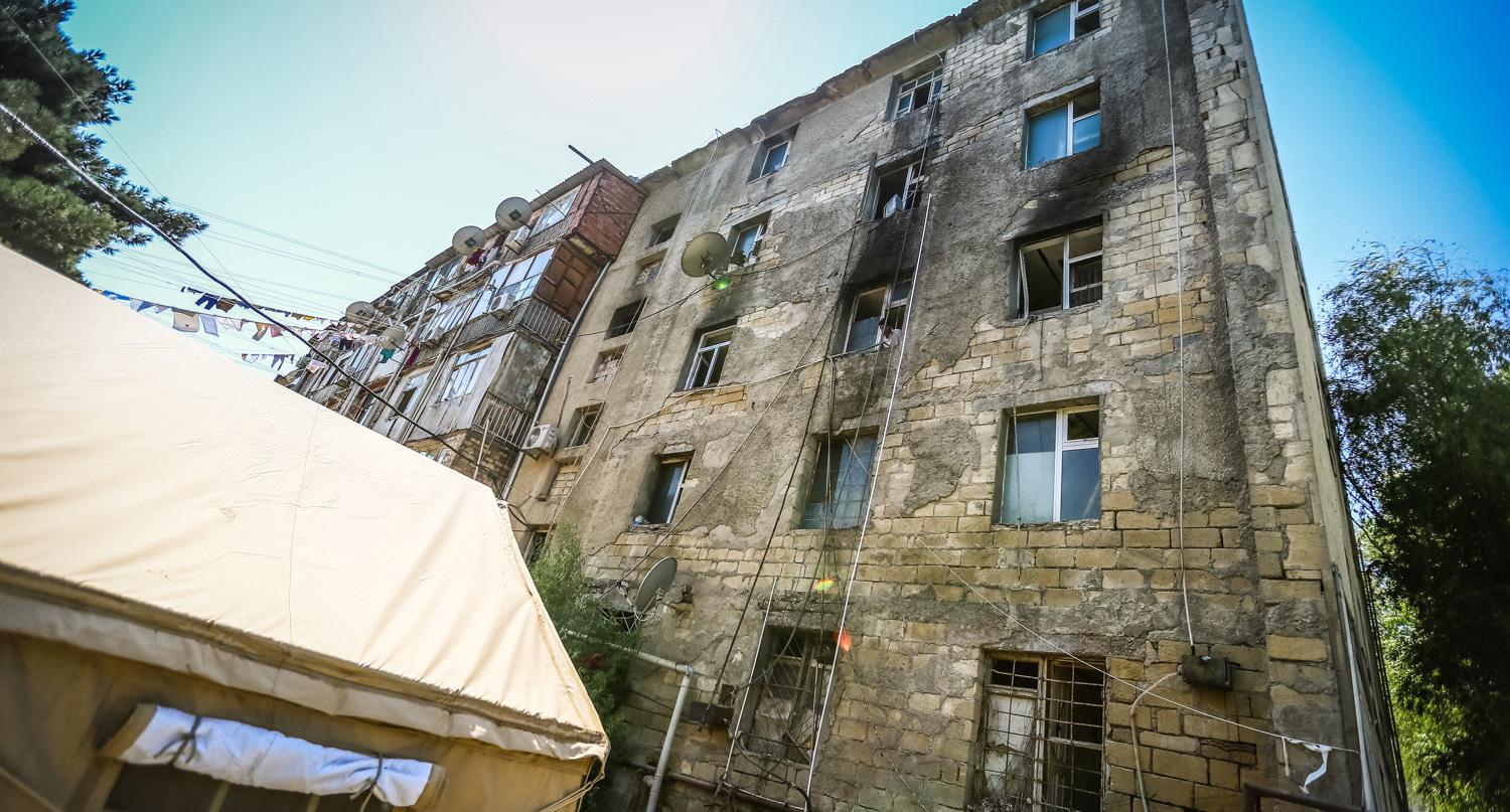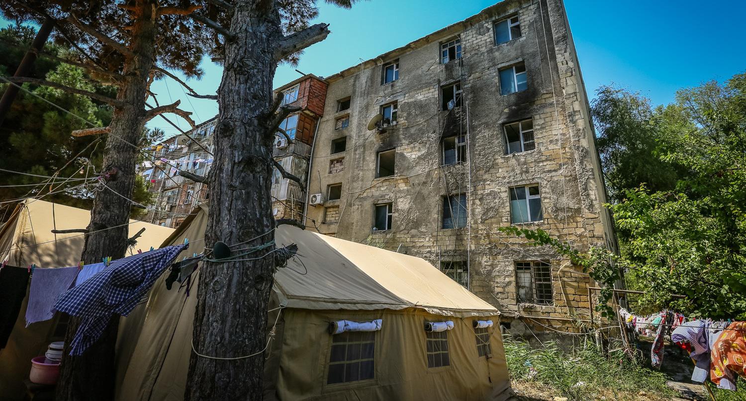 Вынужденные переселенцы, пострадавшие в результате пожара на третьем этаже общежития в восьмом микрорайоне азербайджанского города Сумгаит более двух недель проживают в палатках, установленных МЧС Азербайджана.