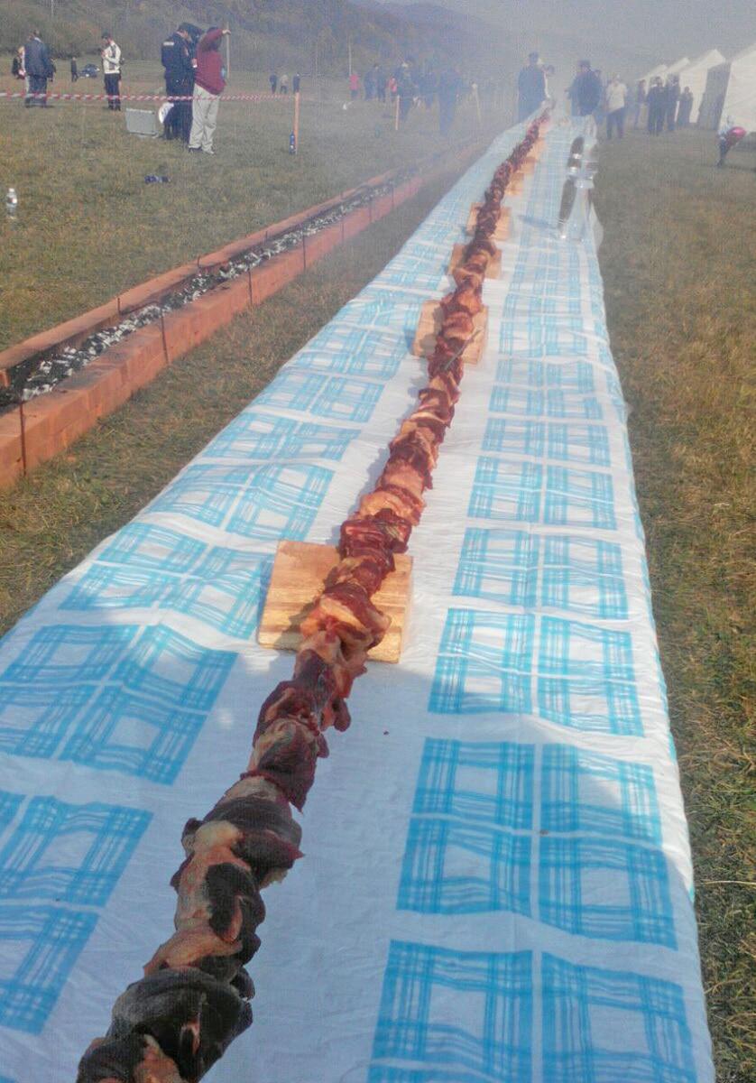 21 октября на приготовление рекордного шашлыка было истрачено 500 килограммов мяса. Длина шашлыка-рекордсмена составила 213 метров, приготовлен он был на поляне между селами Кашхатау и Бабугент. В столице республики всех желающих угощали пловом. Готовился он в больших котлах на площади перед Государственным концертным залом.