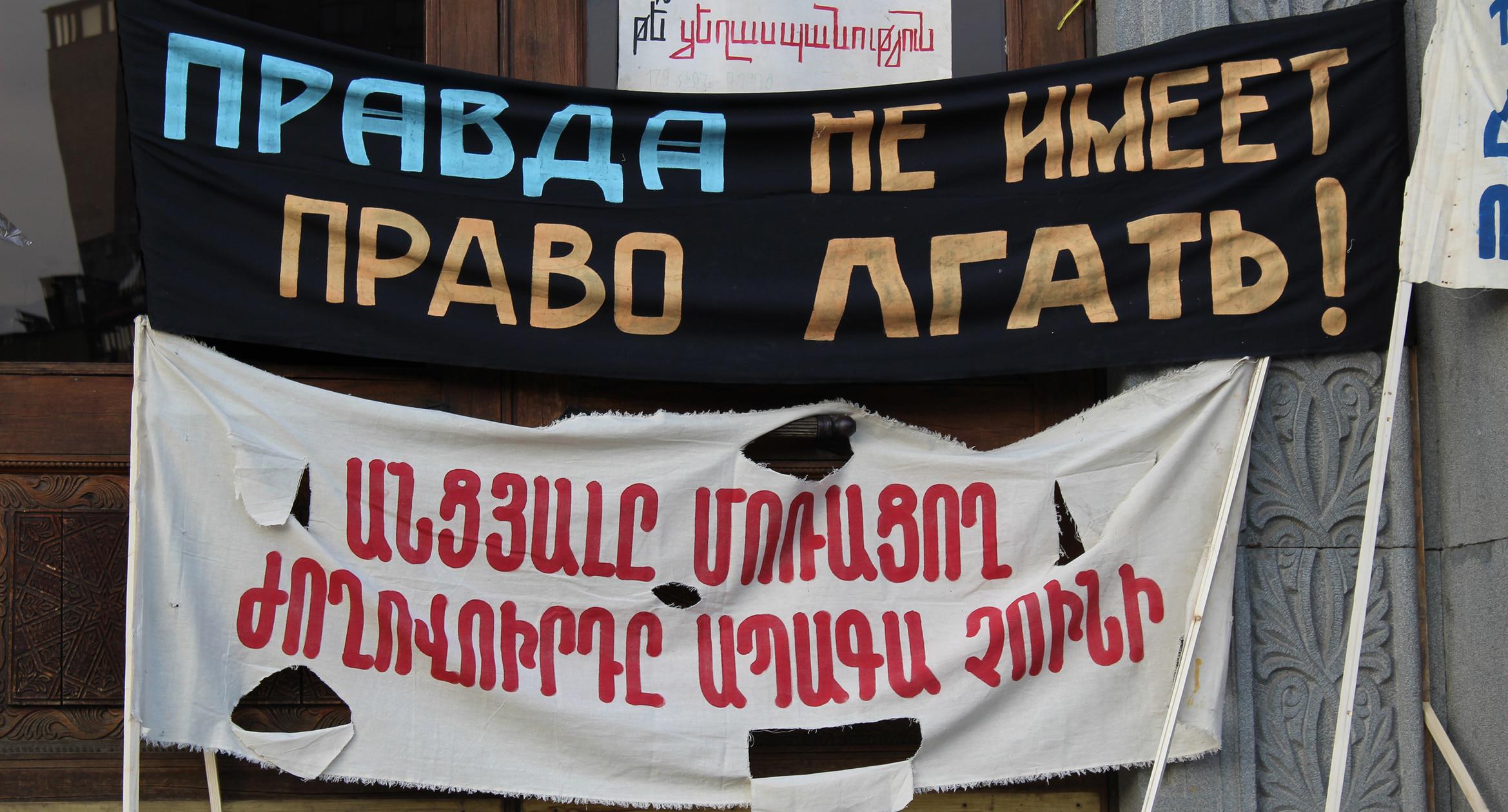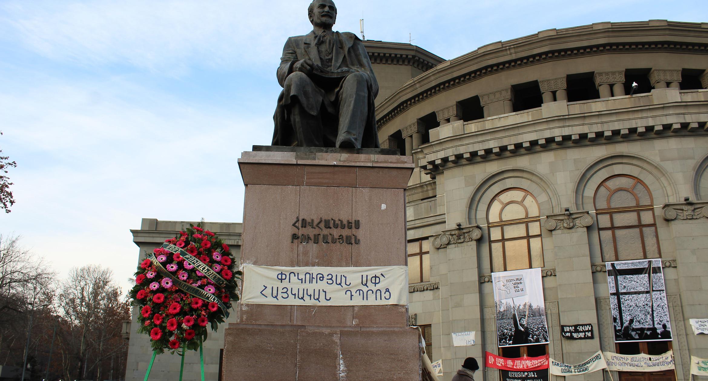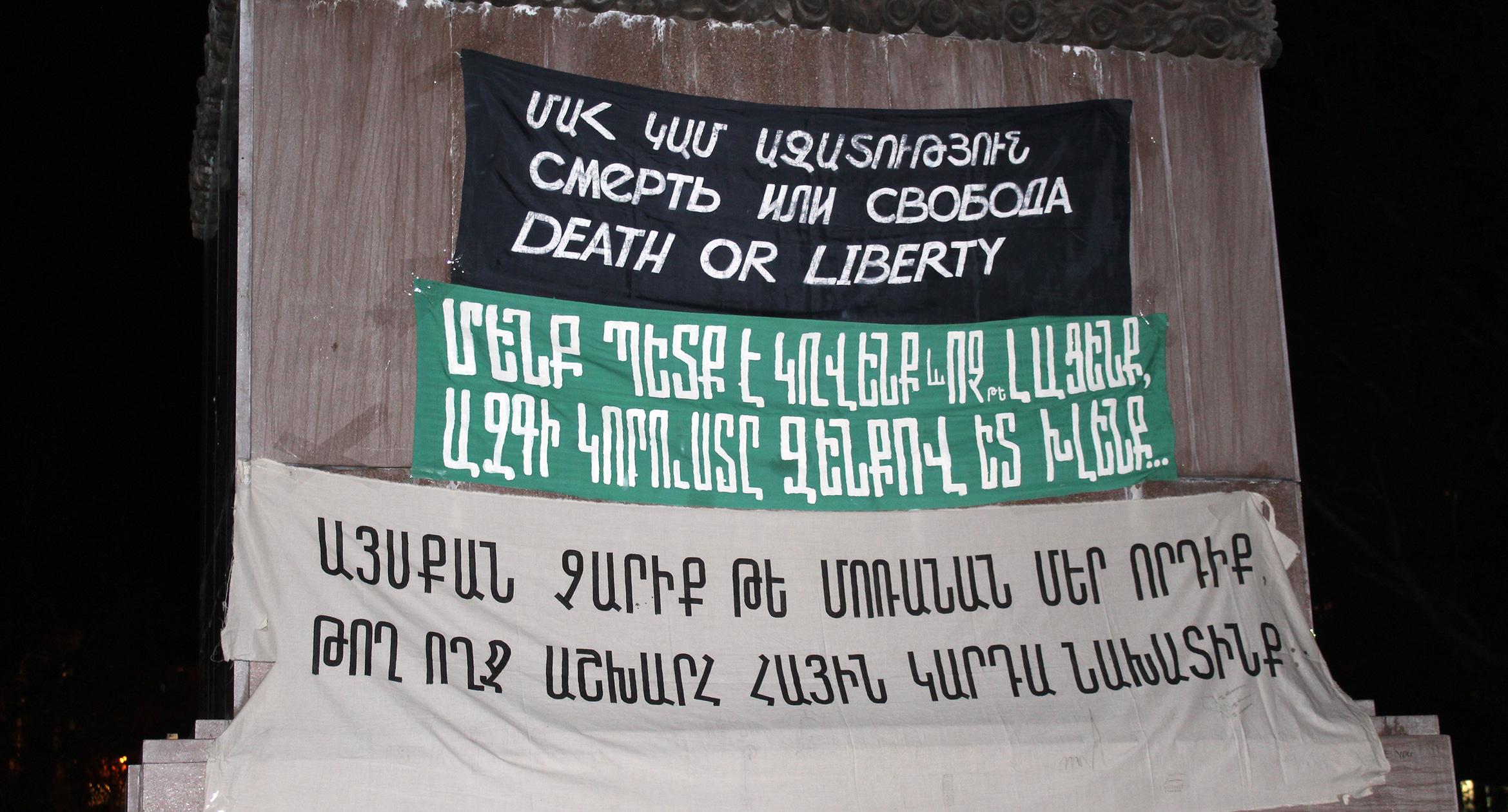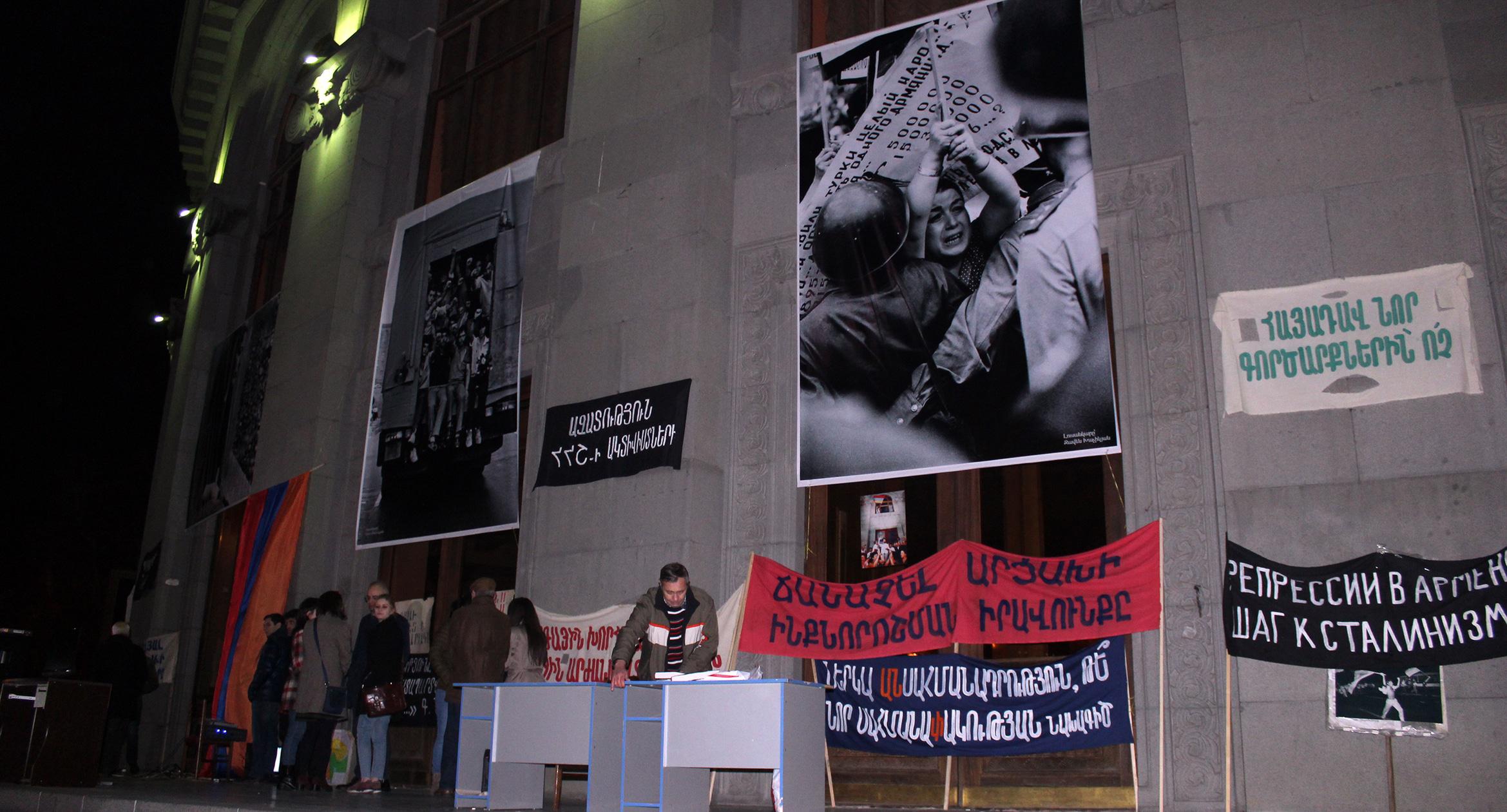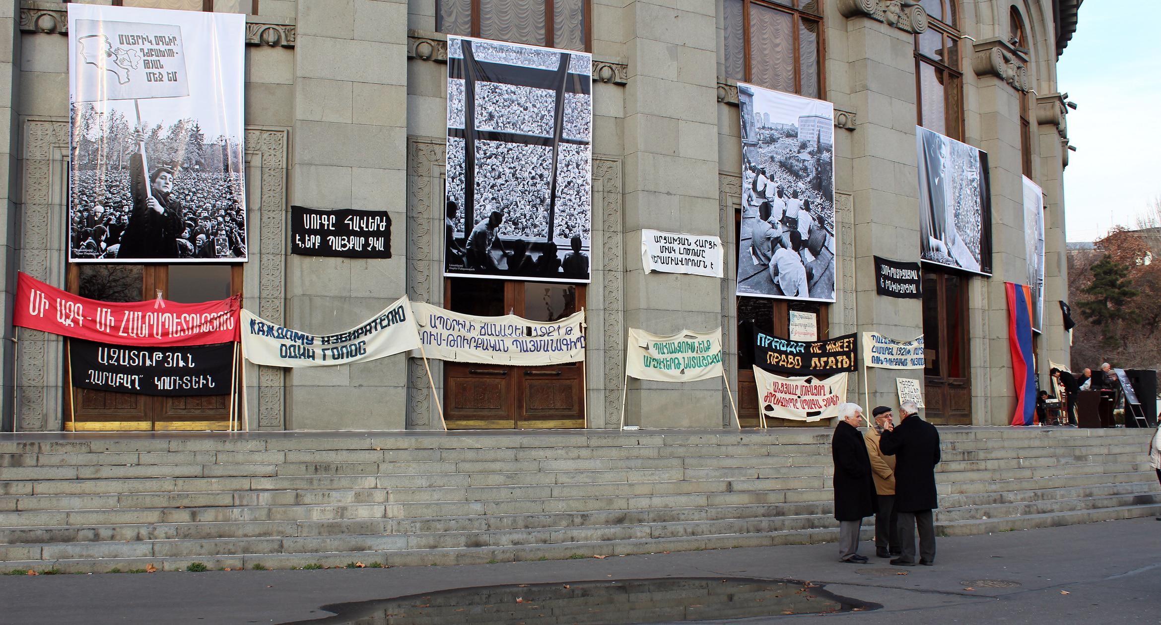 30 лет назад, 20 февраля 1988 года, на ереванской Площади Свободы состоялся первый митинг Карабахского движения. 20 февраля 2018 года на площади вновь появились транспаранты с требованиями присоединения Нагорного Карабаха к Армении. Однако на этот раз они были музейными экспонатами. На площади также представлены фотографии ереванской хроники 30-летней давности. Экспозиция будет доступна для жителей и гостей армянской столицы до 22 февраля. Фоторепортаж корреспондента “Кавказского узла” Тиграна Петросяна.