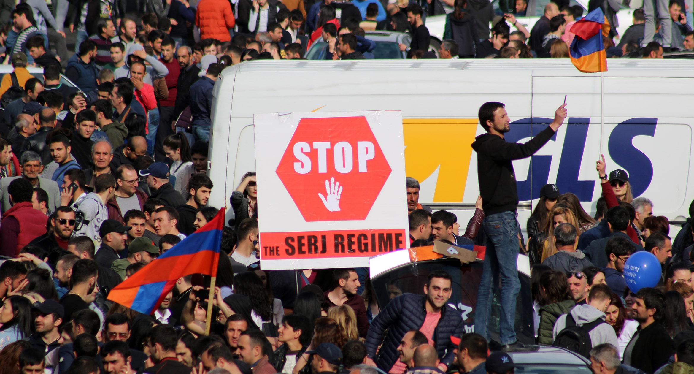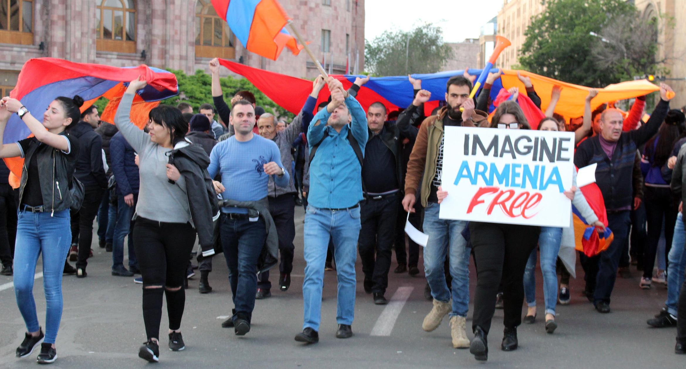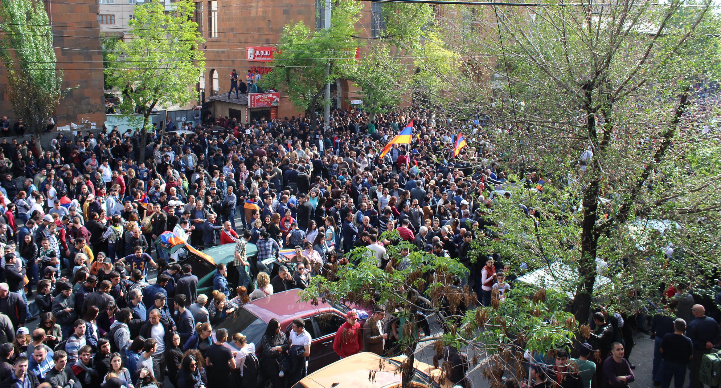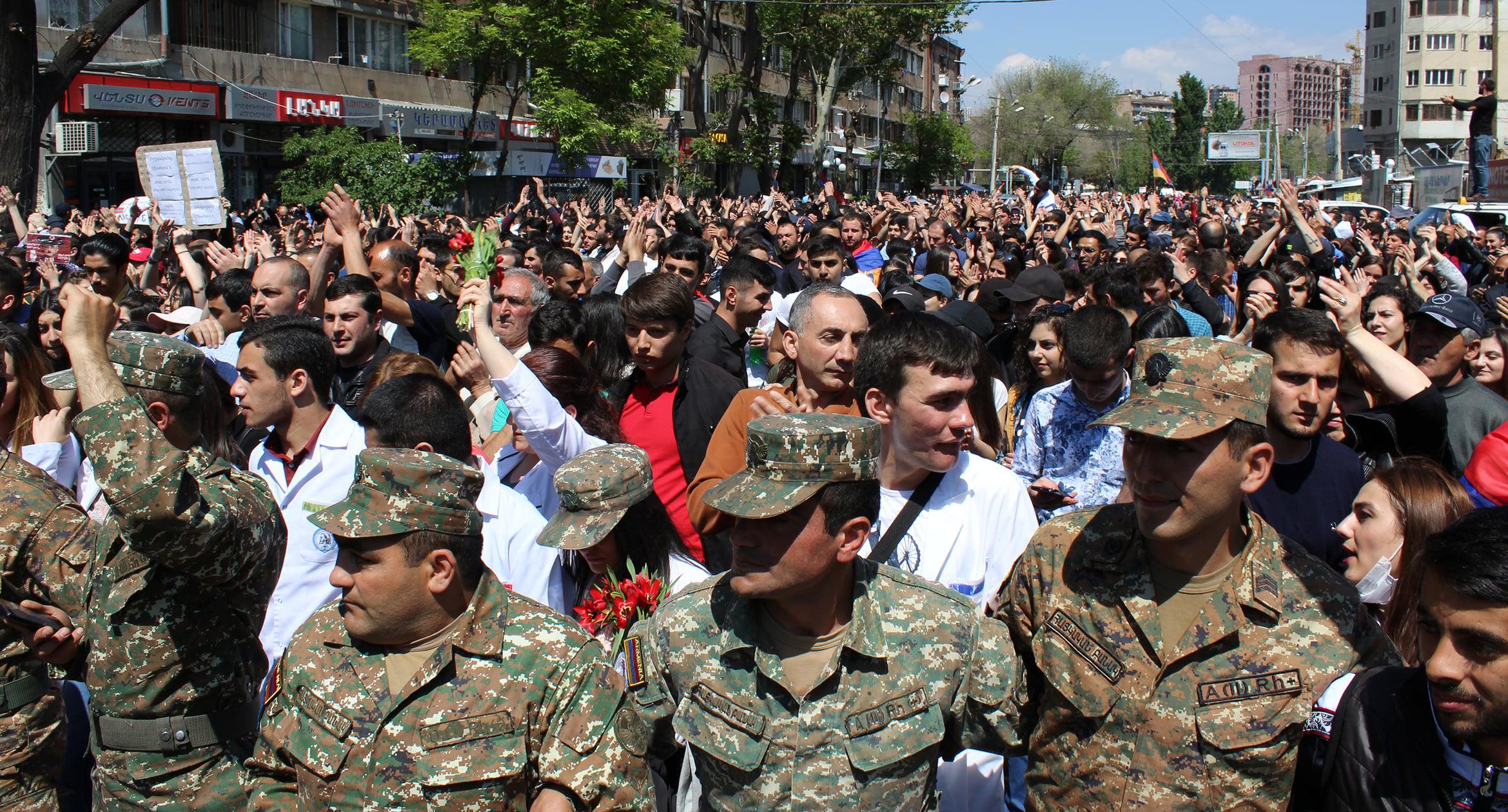 Студенты ереванских вузов 23 апреля начали забастовку. Они провели шествие по столичным улицам, призывая преподавателей присоединиться к акции. Студенты Медуниверситета шли в белых халатах и медицинских масках. Учащиеся Политехнического университета перекрывали улицу Теряна, что полностью парализовало автомобильное движение. К студентам присоединились около 20 солдат миротворческого подразделения. Организаторы шествия оценило число его участников в 10 тысяч человек. Фоторепортаж корреспондента “Кавказского узла” Тиграна Петросяна