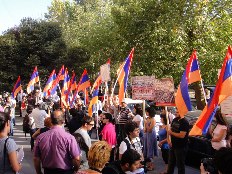 Инициативная группа движения “Освободим памятник от олигарха” 6 сентября провела в Ереване перед зданием министерства культуры акцию с требованием приостановить реконструкцию крытого рынка на проспекте Маштоца. Затем участники акции шествием двинулись в сторону здания правительства, прокуратуры, мэрии и дошли до крытого рынка. Перед всеми инстанциями активисты провели пикеты.